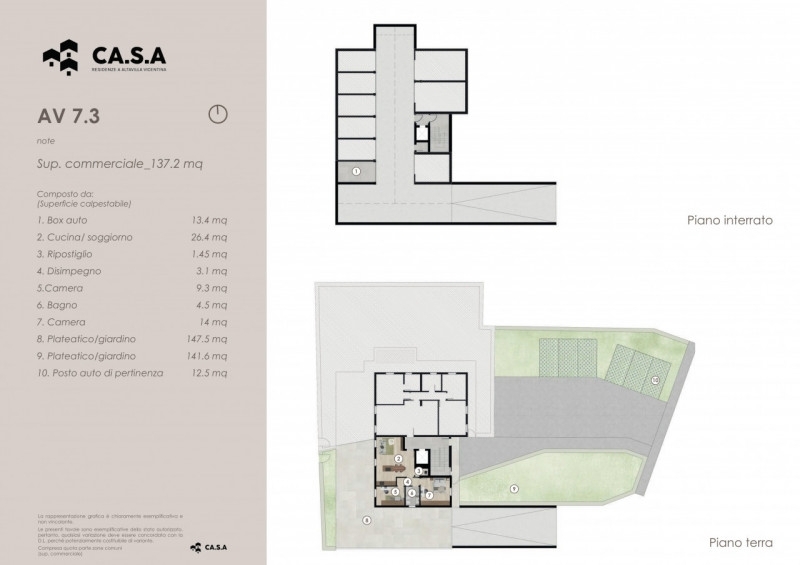 Unità 7.3 in residenze casa si compone da un appartamento tipologia bicamere con un servizo al piano terra nel blocco 3 composto da sole 6 unità. Living, 2 camere e 1 bagno finestrato. Il tutto con 3 lati liberi esposti al sole. completa la proprieta un giardino di circa 300 mq, un garage al piano interrato e posto auto esterno. residenze ca.s.a.vivere il verde, a due passi dalla cittàa pochi minuti da vicenza sta per nascere residenze ca.s.a., un nuovo complesso abitativo pensato per chi desidera riservatezza, qualità della vita e contatto con il verde, senza rinunciare alla comodità dei servizi.un intervento unico nel panorama di vicenza città e zona ovest, per posizione, concezione e varietà di soluzioni abitative.________________________________________un nuovo modo di abitareall'interno di una grande area verde di circa 8.000 mq, il progetto prende forma in un contesto tranquillo e sicuro, ideale per famiglie e per chi cerca uno stile di vita più equilibrato.a soli 5 minuti d'auto da vicenza e a breve distanza da tutti i servizi quotidiani, residenze ca.s.a. Offre:•ampie zone verdi comuni•aree a verde privato•spazi sicuri dove i bambini possono giocare in libertàle prime unità saranno consegnate nella primavera 2027.