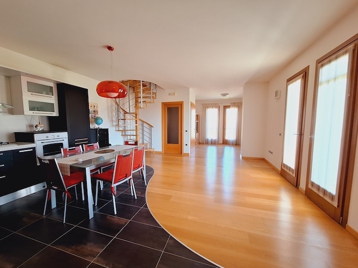 Bellissimo appartamento duplex, in una tranquilla palazzina del 2007 che ospita solo sette unità perfetto per chi cerca un ambiente moderno senza rinunciare al calore e alla bellezza del legno.l'appartamento si sviluppa su due livelli: al primo piano troverai un'ampia zona living con doppio affaccio, ideale per godere della luce naturale durante tutto il giorno. Completa il piano un disimpegno funzionale e un elegante bagno. Al secondo piano, la camera matrimoniale insieme a un bagno dotato di vasca idromassaggio per momenti di puro relax.originariamente progettato con due camere da letto, l'immobile può facilmente essere riconfigurato per ripristinare la seconda camera se necessario. Le finiture sono state curate nei minimi dettagli; riscaldamento a pavimento garantisce comfort termico ottimale mentre i velux motorizzati permettono una gestione intelligente della luminosità interna.in aggiunta agli arredi inclusi nella vendita, l'appartamento dispone anche di condizionatore d'aria e video citofono per maggiore sicurezza. Le spese condominiali sono contenute.al piano seminterrato troviamo un ampio garage doppio.