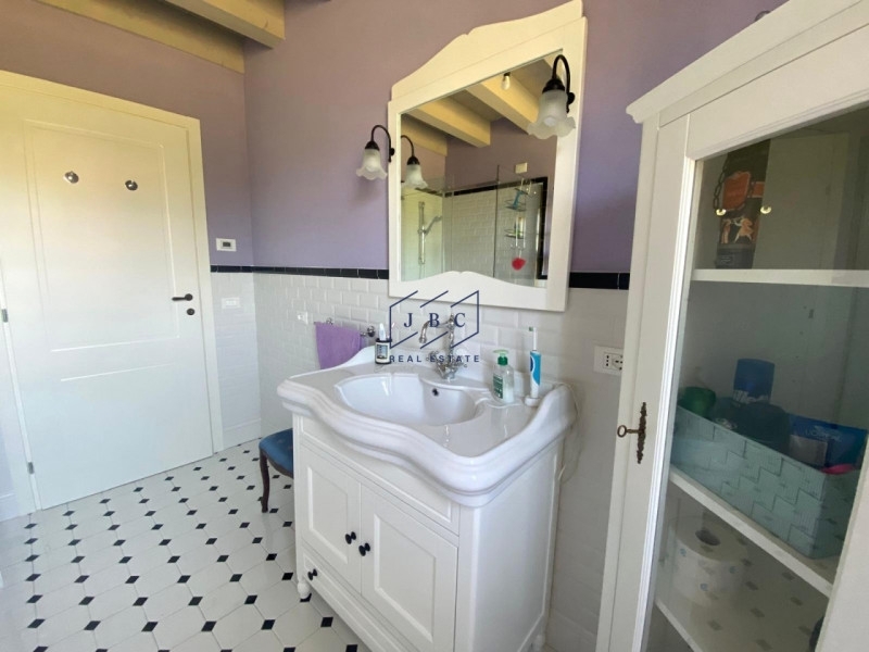 San biagio di callalta - fagare' (tv)questa splendida villa di campagna, realizzata secondo i principi della bioedilizia, unisce il calore e il fascino di un tempo a linee moderne e materiali sostenibili. La scelta ideale per chi desidera vivere in un ambiente accogliente, luminoso e dal forte carattere, immerso nella tranquillità del paesaggio rurale. l'ottima esposizione e le grandi vetrate assicurano un'ottima luminosità naturale.la costruzione in bioedilizia garantisce risparmio energetico, salubrità, sostenibilità.la villa si sviluppa su due livelli:piano terra: ampio open space con zona living e cucina in stile rustico, caratterizzata da dettagli curati e materiali naturali. Completano il piano un comodo bagno con doccia, una funzionale lavanderia con locale tecnico e un generoso garage.primo piano: una scala in legno ci conduce al piano superiore, dove troviamo una spaziosa camera matrimoniale, una camera singola, una stanza aggiuntiva attualmente adibita a guardaroba e un elegante bagno con vasca.elementi di pregio come le travi a vista e le finestre inglesi a doppio vetro conferiscono charme e comfort all'intera abitazione.la villa è circondata da 4.000 mq di terreno, perfettamente integrato nel contesto naturale. L'area esterna è attualmente in fase di sistemazione e offre ampie possibilità di personalizzazione, ideali per chi sogna un giardino, una piscina o uno spazio relax all'aperto.possibilità di permuta.per maggiori informazioni contattaci o passa in agenzia jbc oderzo, ci trovi in:via roma 34 ad oderzo (tv) piazza drago 18, jesolo (ve)