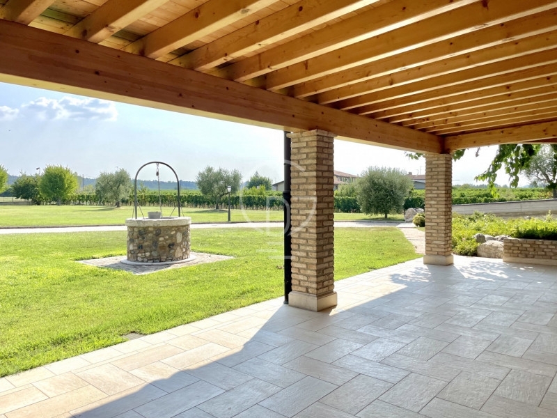 A san benedetto di peschiera, proponiamo villa singola immerso nel verde.dai ruderi di una antica dimora rurale la 'casa di ritrovo' nel cuore dei vigneti del lugana, è stata costruita una splendida villa. per la sua realizzazione su due livelli sono stati adottati inserti e criteri all'avanguardia di costruzione, ma soprattutto sono stati recuperati i materiali conservati e ripuliti, come tavelle, coppi, mattoni, pietre e sassi d'un tempo locali e provenienti anche dall'estero. Dall'importante ingresso con cancello elettrico, un sentiero tra il verde prato inglese della proprietà e gli ulivi, ci accompagna al porticato anticipato da un gelso di oltre 400 anni e da un antico e protetto pozzo artesiano in pietre.dall'ampio porticato in legno entriamo nell'ampio open space della zona giorno con una pavimentazione in travertino bianco bocciardato e riscaldamento sottostante. Qui un'attrezzata cucina con isola precede il grande soggiorno con camino che scalda tutta la villa e la scala autoportante con pedate in pietra rossa iraniana. la zona notte mansardata ha recuperato antichi roveri naturali per la pavimentazione e un sistema domotico di chiusura delle ante in ogni stanza, con dettagli che si alternano tra l'antico e il moderno. Nell'ambiente notte sono distribuite due camere grandi matrimoniali, una singola e un bagno con doccia in mosaico bisazza. tutte le banchine delle finestre del primo piano provengono dalle caditoie di piazza brà di verona.l'intero perimetro della villa è stato rivestito esternamente da muri in pietre, sassi, mattoni e coppi che raggiungono uno spessore di 70cm con intercapedine in sughero e cancellate di sicurezza a scomparsa per ogni porta e finestra. il solaio che divide i due piani è in travetti in legno e tavelle recuperate in antichi cascinali mantovani. tutta la proprietà è recintata e videosorvegliata anche da remoto ed è supportata da un impianto fotovoltaico di 6 kwatt con batterie d'accumulo e pompa di calore.il verde circostante della proprietà è di 4.700mq. Tutta la tenuta raggiunge con la villa quasi 5.000mq, 250mq l'abitazione e 100 la depandance con doppio garage, cantina, lavanderia, cucina di servizio, bagno con doccia e ripostiglio.siamo difronte ad una villa unica nel suo genere , moderna ma dal sapore della tradizione contadina antica, immersa nel cuore dei vigneti e delle piu famose cantine locali del lugana.