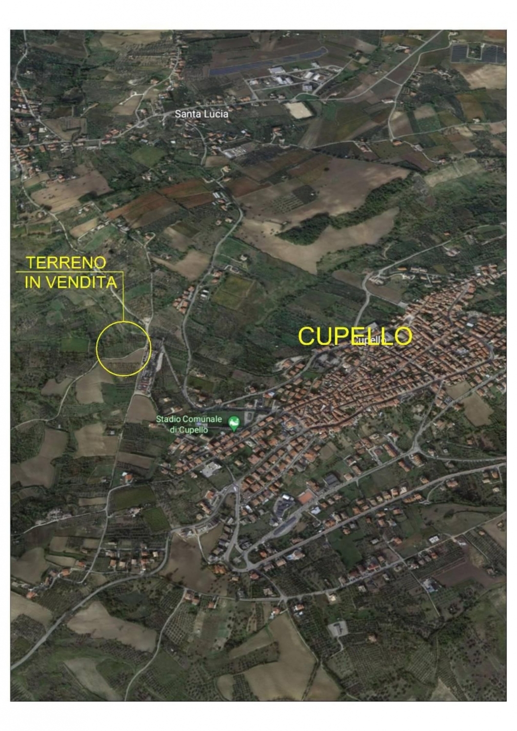 A cupello, in zona montecalvario, non distante dal centro cittadino, proponiamo terreno agricolo, a uliveto, della superficie di 5790 mq circa con ottima esposizione solare e buona morfologia, facilmente accessibile da strada asfaltata confinante. Sono coltivate suil' appezzamento un centinaio di piante di olivo ordinate, ben tenute e curate e un pozzo artesiano con parapetto rotondo e opportuna protezione della bocca, permette l'irrigazione anche nei periodi torridi dell'anno. - sc9359158