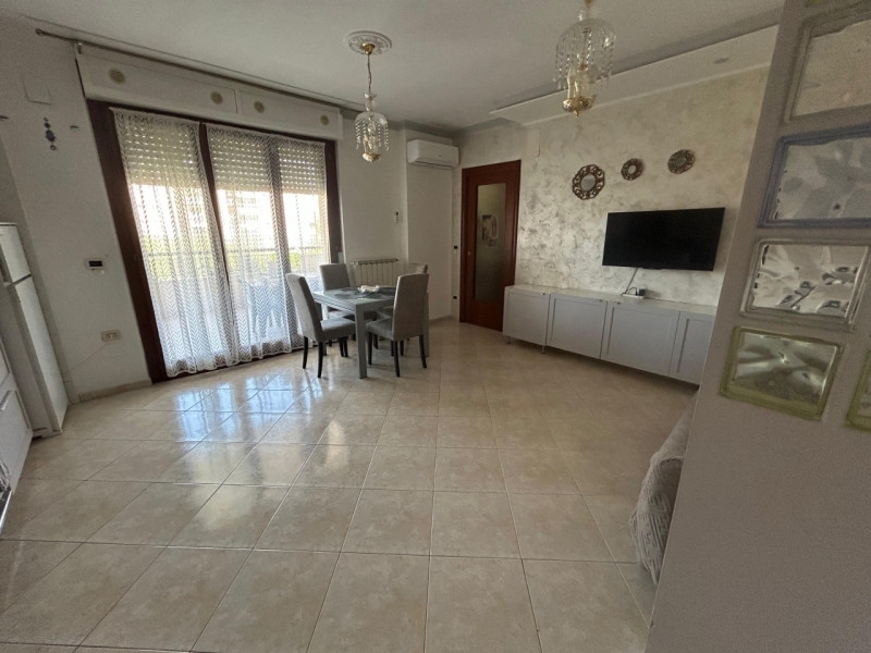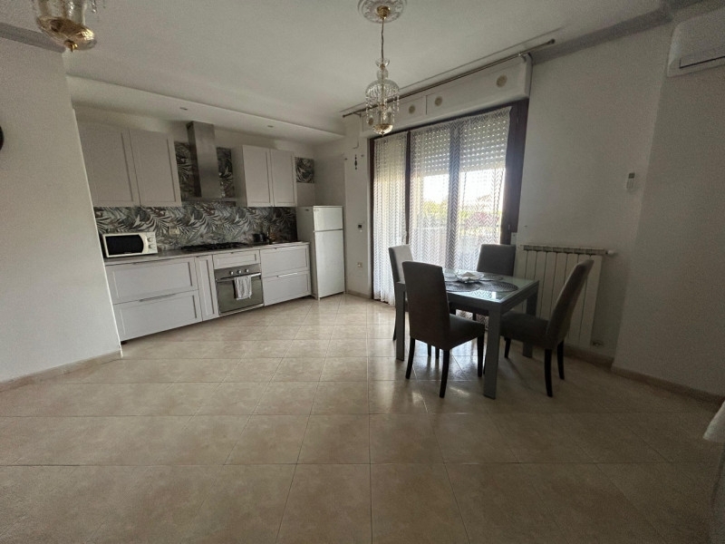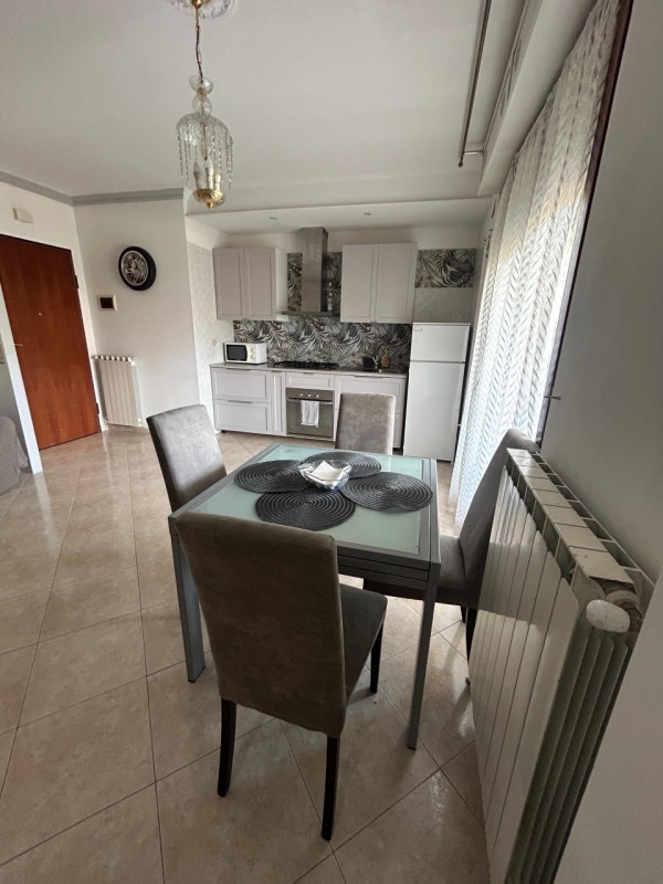 Nel cuore di montesilvano proponiamo in vendita uno splendido appartamento trilocale di circa 80 mq, situato al primo piano di un moderno residence dotato di ascensore. L'immobile si distingue per ambienti luminosi e finiture eleganti: l'ampia zona giorno open space accoglie una cucina dal design contemporaneo completamente attrezzata (forno, microonde, frigorifero) con raffinata parete decorativa e dettagli moderni che donano carattere all'ambiente. Il soggiorno/pranzo è arricchito da grandi vetrate che affacciano su un comodo terrazzo coperto ideale per colazioni o momenti conviviali all'aperto.la pavimentazione chiara effetto marmo esalta la luminosità degli spazi mentre i lampadari pendenti aggiungono un tocco classico ed elegante alla casa; climatizzazione già installata garantisce comfort tutto l'anno. La zona notte offre una camera matrimoniale spaziosa con parquet pregiato e balcone privato oltre ad una cameretta versatile perfetta come stanza bambini o studio/ospiti. Bagno finestrato con box doccia moderno pensato per il massimo relax.completa la proprietà un pratico ripostiglio esterno dedicato a caldaia e pozzetto, garage privato più posto auto recintato accessibile tramite cancello automatico sicurezza totale ogni giorno! le spese condominiali sono contenute (€50/mese escluse utenze).l'appartamento viene venduto completo d'arredo pronto da abitare subito! il contesto residenziale regala tranquillità pur essendo vicinissimo ai principali servizi cittadini: supermercati, negozi locali, ristoranti tipici abruzzesi raggiungibili comodamente a piedi; le spiagge della costa adriatica distano solo pochi minuti rendendo questa soluzione ottima anche come seconda casa vacanze o investimento locativo temporaneo.non perdere questa opportunità unica: contatta subito la nostra agenzia immobiliare per maggiori informazioni o prenotare una visita!