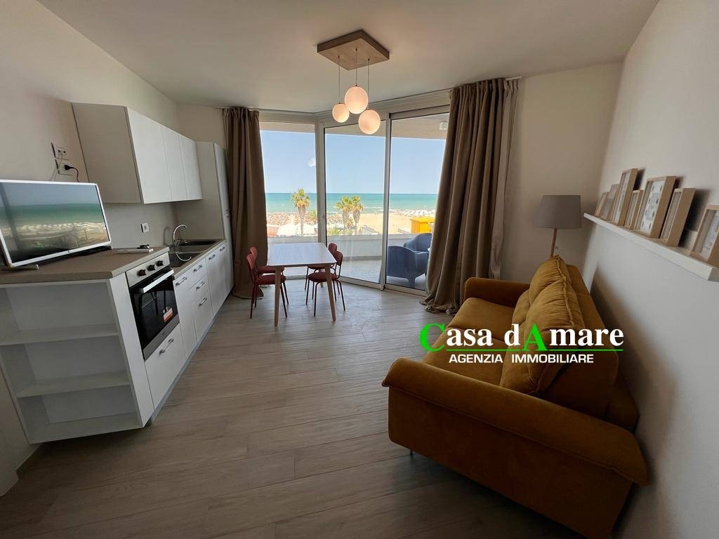 Appartamento di nuova costruzione sito in prima fila sul lungomare marconi di alba adriatica al numero 376 al terzo piano int 7 con ascensore composto da soggiorno cucina ,camera matrimoniale ,camera doppia o matrimoniale,bagno e due balconi tutti e due con vistamare. Completo di cantina al piano seminterrato di 7mq e posto auto interno chiuso da cancello automatico al piano terra di 13.5mq.impianti di riscaldamento e raffrescamento a pompa di calore e con impianto fotovoltaico autonomo da 1kw.bollitore da 110 lt per acqua calda sanitaria a pompa di calore a risparmio energetico.classe energetica a4.mediazione non dovuta non soggetto ad iva. Metri quadri commerciali compresi accessori 90mq
