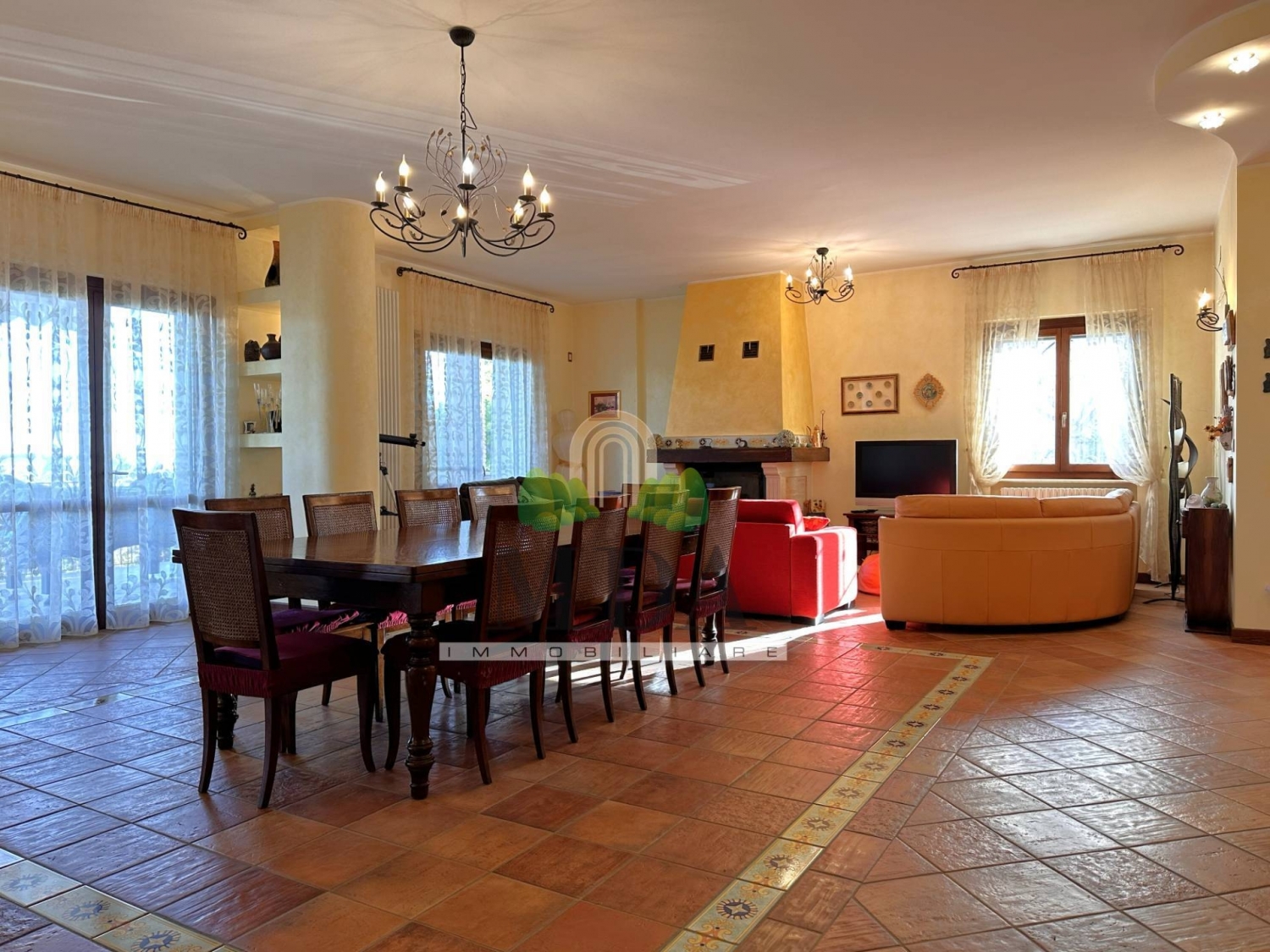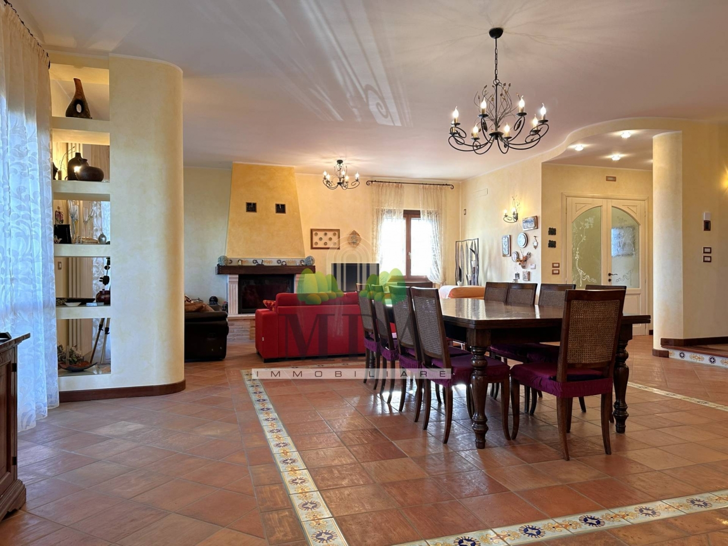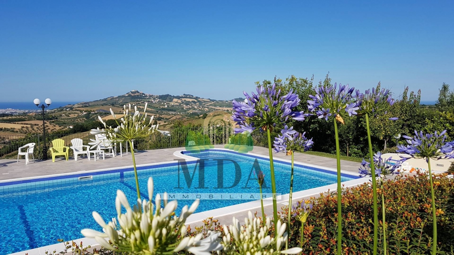 Villa con piscina, frutteto in vendita a controguerra, vista panoramica.la villa è immersa fra le colline abruzzesi, nel cuore del paese di controguerra, zona residenziale, tranquilla e con ampia vista panoramica sul mare adriatico e sulle vette appenniniche.la struttura è di recente costruzione, costruita da appena 15 anni, è di circa 724 mq. In totale e si sviluppa su tre livelli.i vari livelli sono collegati fra loro, oltre che dalla scalinata interna realizzata in legno e piastrelle di vietri, anche dall'ascensore.il piano terra, 208 mq. Circa, è composto da: ingresso, ampio soggiorno con sala da pranzo e caminetto, cucina abitabile, disimpegno, studio, camera matrimoniale con bagno dotato di vasca, doccia e finestra, lavanderia e bagno con doccia e finestra. il piano terra è interessato da un impianto di domotica.dalla zona giorno si accede ad un ampio terrazzo di 70 mq. Circa, tutto esposto ad est, dove è possibile godere di una gradevolissima vista sul mare.dal terrazzo si scende verso la piscina e da questa si può accedere al frutteto.la zona piscina è dotata di casse acustiche, compreso di locale pompe, depuratore, servizi igienici.al primo piano, 163 mq. Circa, si accede dalla scala interna e vi possiamo trovare: disimpegno, cinque camere matrimoniali, di cui tre con bagno dotato di vasca, doccia e finestra, ripostiglio.due delle camere da letto hanno accesso a due distinti terrazzi abitabili, uno di 16 mq. Circa esposto a nord-ovest e l'altro di 26 mq. Circa esposto sud-ovest.dalle altre tre camere si accede ad un terrazzo abitabile di 83 mq. Circa esposto ad est.il secondo piano, mansardato, 58 mq. Circa, è composto da: camera da letto, due ripostigli, un bagno con doccia e finestra.dalla mansarda ci si affaccia al balcone tutto esposto ad est ed al terrazzo abitabile, 28 mq. Circa, esposto a nord-est, dal quale la vista può spaziare dagli appennini al mare adriatico.al piano seminterrato, 70 mq. Circa, è presente un magazzino, un garage ed un locale deposito per l'attrezzatura della piscina.la villa dispone di: ascensore, sistema di domotica al piano terra compreso il portico ed il giardino, parquet in tutte le camere da letto, infissi con doppio vetro, inferriate a scomparsa in tutti gli infissi del piano terra, zanzariere in tutti gli infissi, vetri blindati nella parte bassa delle porte-finestra, persiane blindate, sistema di allarme, impianto di filodiffusione, condizionatori in cinque camere da letto, predisposizione per l'aria condizionata in altre due camere e nel soggiorno, predisposizione per la realizzazione di una cucina sia al primo piano e sia al secondo piano, scala lignea, piastrelle di vietri che vanno ad arricchire scala, bagni, camino, pavimentazione del soggiorno, possibilità di riscaldare la casa a zone distinte, cisterna da 100 quintali che permette l'irrigazione di tutto lo spazio esterno.la predisposizione per realizzare una cucina al primo piano ed una al piano mansardato, darebbe la possibilità di dividere la villa in più appartamenti.la villa, insistente su di un terreno di 3.000 mq. Circa, è completamente recintata e dispone di due ingressi distinti, entrambi con cancello automatizzato.all'interno della recinzione sono presenti dei posti auto.nei mesi estivi la struttura si trasforma in un gradevole e rilassante bed & breakfast.chiama ora la mda immobiliare al numero per maggiori informazioni e per fissare una visita.si precisa che le informazioni fornite non costituiscono parte integrante di un contratto.