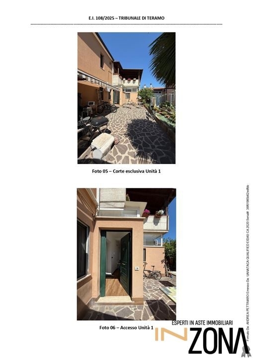 Astanl'immobile è costituito catastalmente da un'unica unità immobiliare che, di fatto, risulta divisa con la costituzione di due unità indipendenti, che per chiarezza espositiva vengono indicate come unità 1 e unità 2, hanno ingressi indipendenti alle quali si accede rispettivamente direttamente da via ottaviano e da via dei gracchi. L'unità 1, con accesso da via ottaviano, risulta costituita da soggiorno, portico, ripostiglio e w.c., cucina, n. 2 camere da letto e bagno. La piccola corte esclusiva è pavimentata con piastrelle in porfido ed è delimitata con muro cancello carrabile. é presente un piccolo manufatto in legno adibito a rimessa attrezzi. Ambiente economico sociale: ottimo, in zona residenziale, nel centro abitato di roseto degli abruzzi (te) e a circa 100 m dalla costa adriatica. L'unità 2, con accesso da via dei gracchi, risulta costituita da soggiorno/cucina, una camera da letto e un w.c. Nndata di venditan :00nnprezzo base d'astan120.000,00 and euro;nofferta miniman90.000,00 and euro;nnl'esattezza di tutti i dati pubblicati sarà confermata in sede di consulenza.nti piacerebbe comprare una casa all'asta ma non sai come fare perché non sei un esperto?nncontattaci per avere maggiori informazioni su questo immobile e su come poterlo acquistare in totale sicurezza.nninzona offre un servizio di assistenza tecnico - legale per l'acquisto di immobili in asta attraverso queste attività:nnprima consulenza appuntamento presso la nostra sede di mosciano sant' angelo viale europa 23 per offrire chiarimenti sulle aste ed ascoltare le tue esigenze immobiliari.nmediazione creditizia servizio esclusivo ad alto valore aggiunto, proponendo un ventaglio di prodotti tra i più completi con studio fattibilità per la partecipazione in asta con mutuo fino al 100%n- studio della perizia e della documentazione dell'immobilen- accertamenti catastali per eventuali abusi edilizin- accompagnamento visita immobilen- disbrigo pratiche per la partecipazione all'astan- rappresentanza legale il giorno della venditan- rilascio del decreto di trasferimento in tempi brevin- assistenza per il saldo prezzon- compilazione f24 per tassen- disbrigo pratiche per eventuale sanatorian- assistenza alla consegna immobilennper maggiori informazioni inviaci un messaggionn