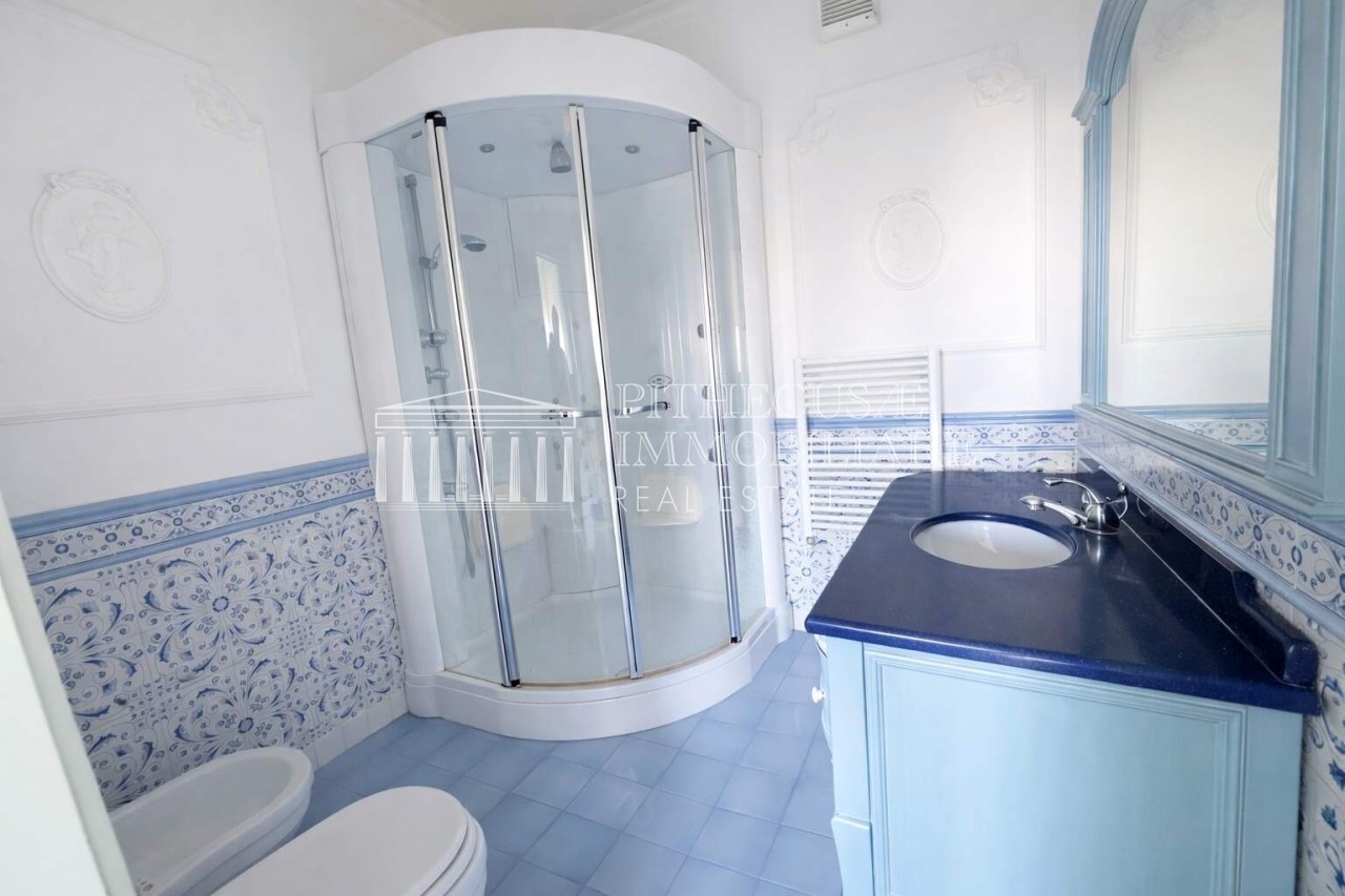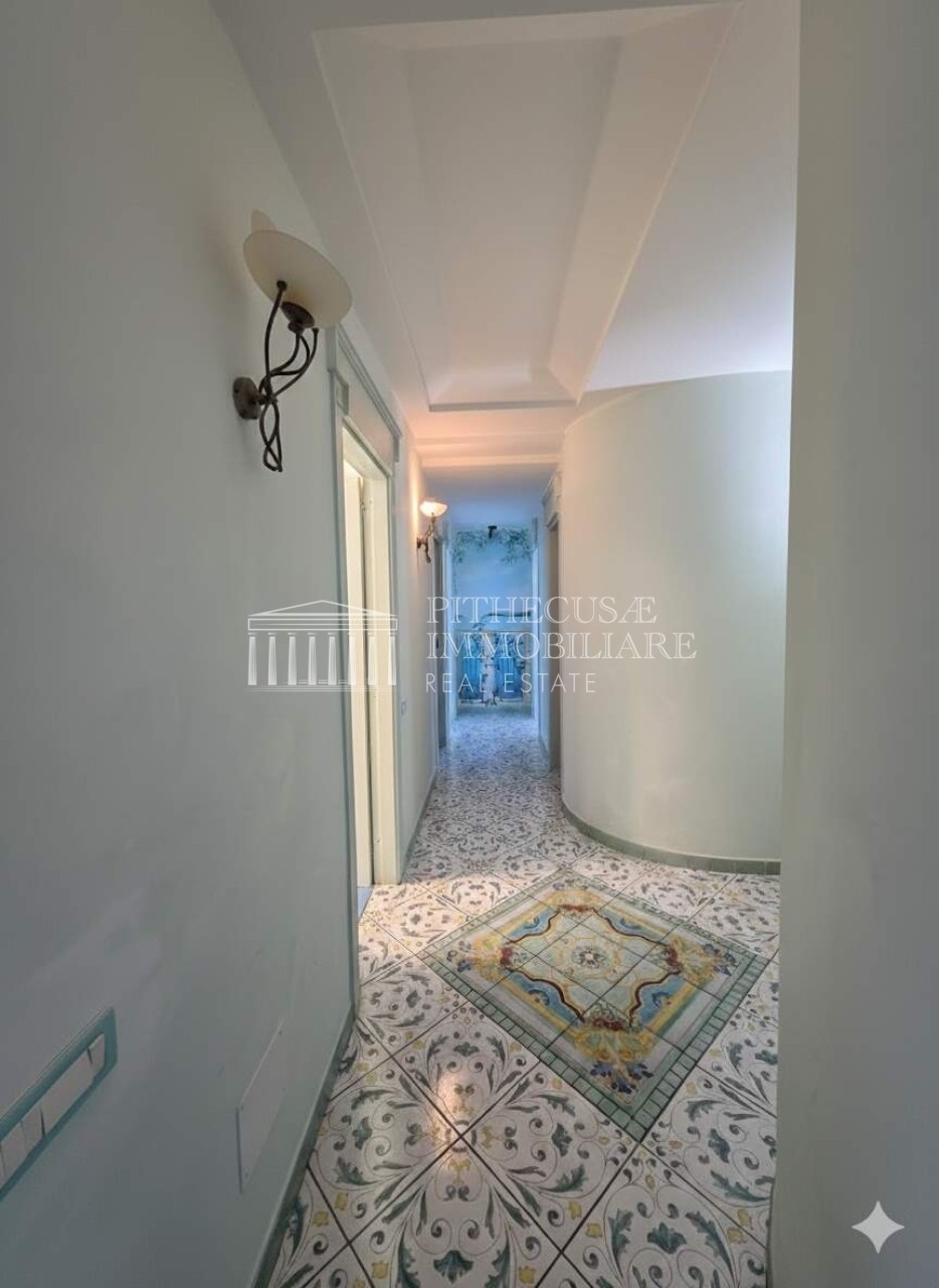 Nel cuore di ischia, con affaccio diretto sul mare e vista impareggiabile sul suggestivo castello aragonese, proponiamo una proprietà esclusiva di rara reperibilità.l'appartamento si sviluppa su 140 mq interni utili, distribuiti in modo razionale ed elegante, a cui si aggiungono circa 300 mq di terrazzi panoramici: un autentico valore aggiunto che trasforma la casa in una residenza unica, sospesa tra cielo e mare.distribuzione internala zona giorno è composta da un ampio soggiorno con cucina a vista, ambiente luminosissimo grazie alle grandi superfici vetrate fronte mare, rifinito con materiali di pregio ed elettrodomestici miele. Le ceramiche di alta qualità e le ampie vetrate creano una perfetta continuità tra interni ed esterni.la zona notte comprende:due camere matrimoniali vista mare, entrambe panoramicheuna cameretta, ideale come studio o stanza ospitidue bagni, di cui uno en suite nella camera padronale completo di sauna privatal'intera abitazione è dotata di impianto di climatizzazione a soffitto, soluzione elegante e discreta che garantisce massimo comfort.spazi esternii 300 mq circa di terrazzi panoramici rappresentano il vero punto di forza: ambienti esterni vivibili, perfetti per area lounge, zona pranzo all'aperto, solarium o eventuale area wellness, con vista dominante sul mare e sul castello. Una metratura esterna che consente di vivere la casa tutto l'anno.accessi e pertinenzedue ingressi carrabilidue ingressi pedonali, di cui due ad uso esclusivotre posti auto di proprietà, elemento estremamente raro nel centro dell'isolauna soluzione immobiliare di alto profilo, ideale sia come residenza principale sia come dimora di rappresentanza o investimento di prestigio, in una delle location più iconiche di ischia.