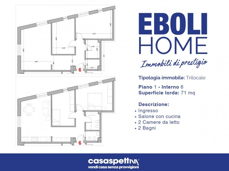 Nel cuore di eboli sta rinascendo un prestigioso palazzo storico, oggetto di una ristrutturazione totale che unisce la bellezza dell'architettura originaria al comfort e all'efficienza dell'abitare contemporaneo. In questo contesto esclusivo prendono forma nuove unità abitative progettate per garantire qualità costruttiva, design moderno e un'elevata prestazione energetica.gli appartamenti si trovano in una posizione centrale e strategica: distano circa 250 metri dal municipio, dall'ufficio postale e da piazza della repubblica; 350 metri dalla scuola 'matteo ripa' e 500 metri dall'ospedale. Nelle immediate vicinanze sono inoltre presenti supermercati, bar, ristoranti e negozi di diverso genere, rendendo questa soluzione ideale per vivere quotidianamente il centro con la massima comodità.la disponibilità comprende diversi trilocali, tutti caratterizzati da una distribuzione funzionale, ambienti luminosi e materiali di pregio. Al primo piano troviamo appartamenti di circa 71 mq proposti a € 105.000 e soluzioni da circa 88 mq offerte a € 119.000.al secondo piano sono disponibili unità di circa 76 mq con balcone a € 116.000, trilocali di circa 88 mq con balcone a € 129.000al terzo piano disponiamo di un appartamento di circa 72 mq con balcone a € 97.000 e una soluzione di circa 50 mq con balcone a € 83.000.al quarto piano abbiamo un trilocale di circa 80 mq con balcone a € 112.000 e uno di circa 90 mq con balcone proposto a € 160.000. diverse metrature, una stessa filosofia: comfort, praticità e valore nel tempo, ideali per chi desidera vivere in centro o investire in un'immobile moderno e facilmente locabile.tutti gli appartamenti vantano un capitolato di alta qualità che include pavimenti in gres e parquet, infissi schüco per garantire isolamento termico, acustico ed energetico, porte interne di design, impianti b-ticino, sanitari e rubinetterie di fascia superiore, porta d'ingresso blindata e ascensore. A completare i servizi, una palestra condominiale che rende la residenza ancora più esclusiva e funzionale.gli immobili raggiungono la classe energetica a4 e sono predisposti per l'impianto fotovoltaico, garantendo bassissimo impatto ambientale, consumi ridotti e un risparmio energetico concreto nel tempo. Possibilità di acquistare garage, posto auto e/o cantina a parte per rispondere a ulteriori esigenze di spazio.una nuova idea di vivere in centro tra storia, innovazione, efficienza e comfort quotidiano.cosa aspetti? casaspetti! contattaci telefonicamente o via whatsapp allo o al per avere maggiori informazioni.