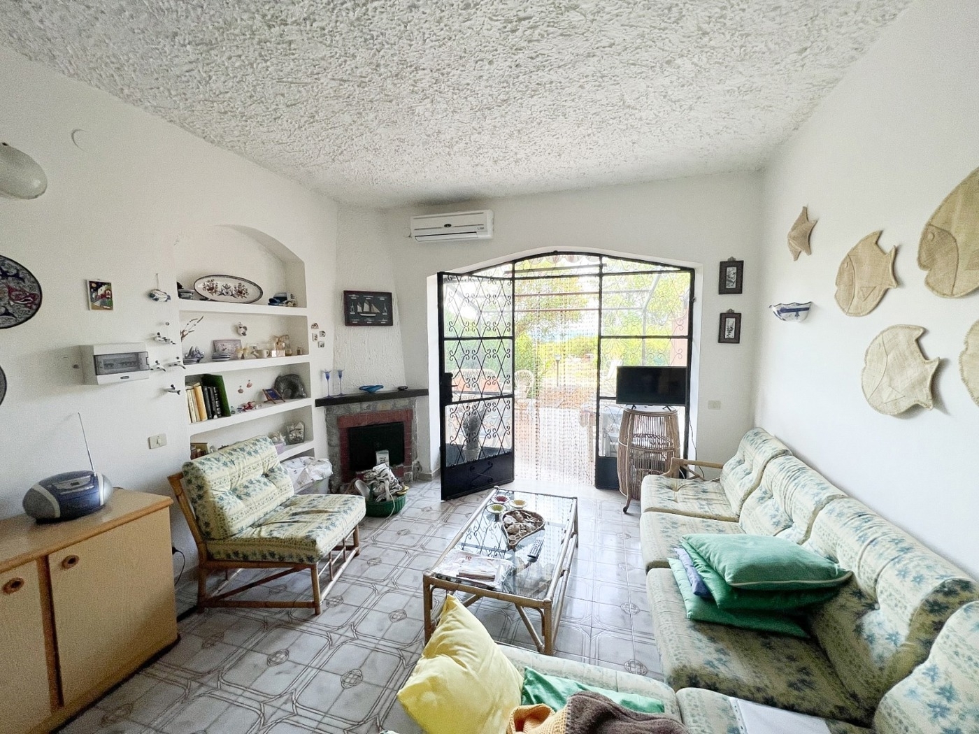 Scario: a pochi metri dal mare, in contesto residenziale, graziosa villa bifamiliare in buone condizioni con camino e climatizzatori nonch gradevole giardino panoramico, composta al piano terra da ampio soggiorno che affaccia su terrazzo a livello con pergolato, ideale per i momenti di relax, cucina a vista, camera da letto e bagno; una scala interna conduce al piano primo costituito da due camere da letto, bagno e terrazzino vista mare. Giardino attrezzato a verde con zona doccia-lavabo e barbecue. Posto auto interno. - sc9476383
