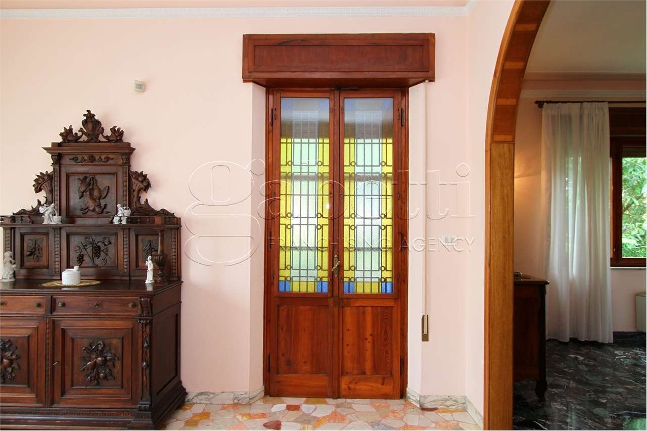 Copparo in posizione centrale, proponiamo in vendita una prestigiosa residenza indipendente di rilevante fascino architettonico.l'immobile, classificato catastalmente come a/8 (abitazione di lusso), si sviluppa su due livelli, è libero su quattro lati ed è circondato da un giardino esclusivo di circa 1.250 mq.la villa, edificata negli anni cinquanta e rifinita con materiali di pregio, è stata oggetto di un attento restauro conservativo nei primi anni 2000, volto a preservarne il carattere originario e ad aggiornarne gli impianti e le finiture.distribuzione degli ambienti:al piano primo, accessibile tramite un'elegante doppia scala esterna, si sviluppa l'abitazione principale, composta da: ingresso, studio, salone con accesso a terrazzino, ampia cucina abitabile con annessa dispensa, disimpegno zona notte, quattro camere da letto, cabina armadio e due bagni.il piano terra, collegato sia internamente che esternamente, ospita un'autorimessa di circa 34 mq, oltre a locali di servizio, locali accessori e un ulteriore bagno.caratteristiche tecniche e impiantistiche:il sistema di climatizzazione invernale ed estivo è garantito da termoconvettori.gli infissi originali in legno, dotati di vetri tripli, sono stati mantenuti e valorizzati. Le tapparelle, anch'esse sostituite, sono in alluminio coibentato, per un migliore isolamento termico.gli impianti termico, idraulico ed elettrico sono stati integralmente rinnovati. Anche la copertura è stata completamente rifatta e, in tale occasione, è stato installato un impianto fotovoltaico da 5,4 kwp, con una produzione annua di circa 5.500 kwh.l'immobile è inoltre dotato di impianto di allarme.ulteriori informazioni disponibili previo appuntamento riservato presso i nostri uffici.classe energetica: d 195,46 kwh/m2 a