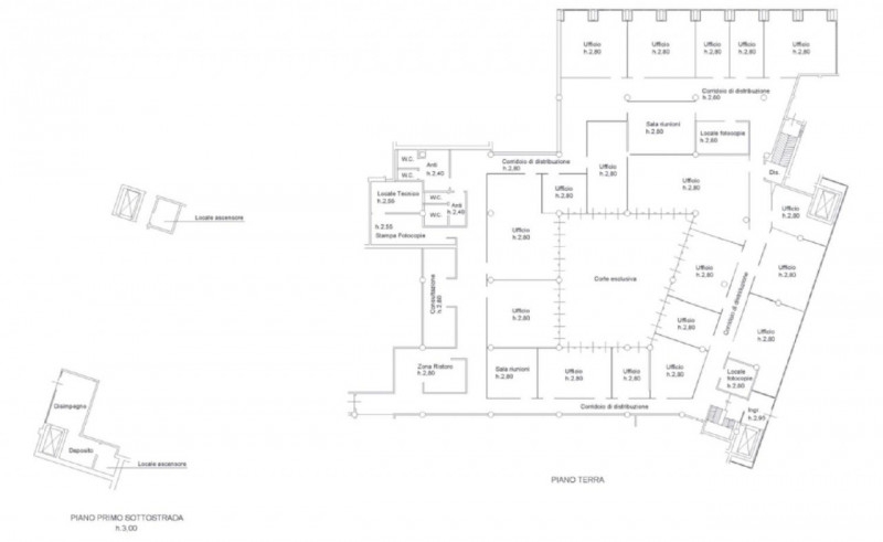 Proponiamo in vendita un ampio ufficio situato a cesena, in piazza leonardo sciascia, all'interno di un moderno e ben organizzato complesso commerciale/direzionale sviluppato su cinque piani fuori terra.l'unità è posta al piano terra e si caratterizza per una distribuzione interna razionale e altamente funzionale. Gli spazi comprendono numerosi vani ad uso ufficio, sale riunioni dedicate, locali tecnici e aree di supporto quali locali fotocopie, servizi igienici con antibagno e zone ristoro. I vari ambienti sono collegati da ampi corridoi di distribuzione che garantiscono fluidità nei percorsi interni e una gestione efficiente delle attività lavorative.elemento distintivo dell'immobile è la presenza di una corte esclusiva interna, che conferisce luminosità agli ambienti e rappresenta un valore aggiunto in termini di comfort e qualità degli spazi direzionali.l'ufficio si presta particolarmente a sedi aziendali strutturate, studi professionali associati o attività direzionali che necessitano di ambienti ampi, modulabili e ben separati per funzioni operative e rappresentative. La posizione, in un contesto prevalentemente terziario e ben collegato alla viabilità cittadina, rende la soluzione ideale per chi ricerca visibilità, funzionalità e prestigio.