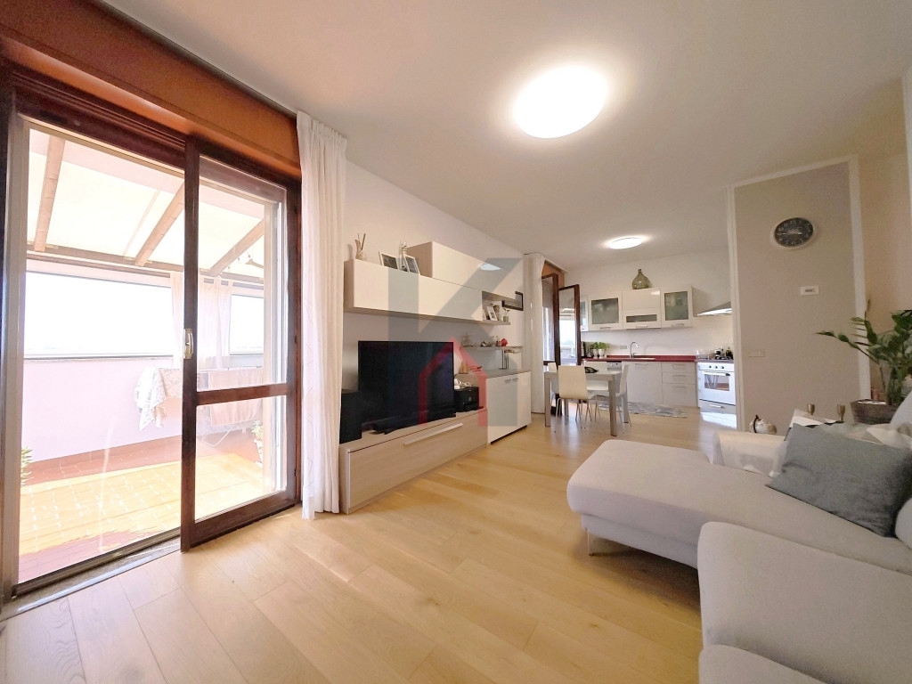 San martino in strada _ kleo immobiliare propone luminoso attico con 3 letto e ampio terrazzo abitabile di 32 mq posto al terzo piano in un contesto ben tenuto e di poche unità, garage, cantina e posto auto all'interno della corte condominiale.superata la soglia troviamo a sinistra la zona giorno con il salotto e la cucina a vista che affacciano, tramite due portefinestre, sul terrazzo coperto abitabile dal quale si può godere del panorama sulla città.procedendo a destra della porta d'ingresso si va verso la zona notte dove si dispone di una camera da letto da 10 mq, una matrimoniale da 14,5 con balcone riservato, una terza camera da 10 mq con balcone riservato e il bagno finestrato con box doccia.il riscaldamento è autonomo, gli infissi in doppio vetro e legno.la pavimentazione, le tapparelle e le zanzariere sono stati installati nel 2023 e la facciata esterna del palazzo è stata ripresa nel 2022.completa la soluzione una cantina al piano interrato, un garage di proprietà e un posto auto concordato all'interno della corte condominiale. _ultimo piano_vista panoramica_32 mq di terrazzo_3 letto_riscaldamento autonomo_cantina_garage_posto auto concordato