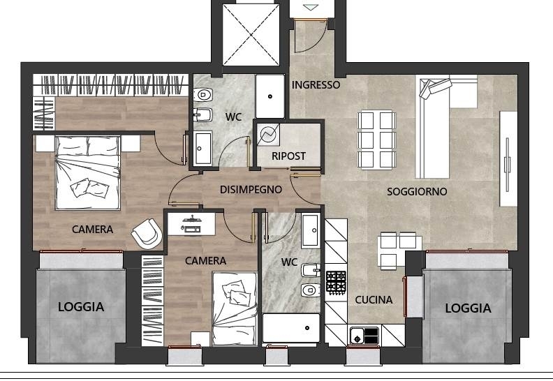 Nuovo appartamento con logge, garage e posto auto zona ospedalea sassuolo, zona ospedale, in contesto residenziale tranquillo con piacevole vista verso la collina, proponiamo appartamento in palazzina di nuova costruzione (consegna giugno 2027).ultima disponibilità al piano secondo, servito da ascensore.l'abitazione è composta da soggiorno con cucina a vista, ripostiglio, due camere, due bagni e due logge coperte.completano la proprietà garage, cantina e posto auto esterno privato. Classe energetica: g