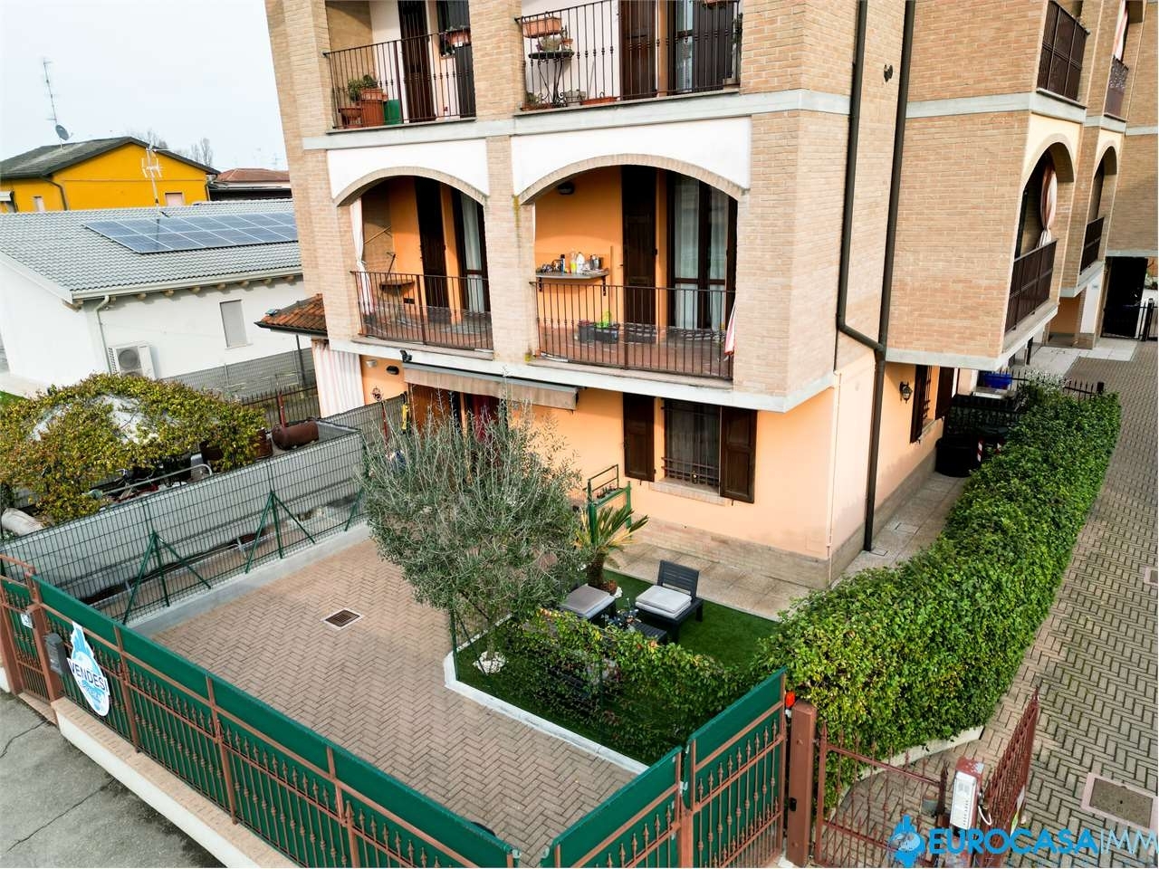 Soliera, maisonette con giardino privato! in zona centrale a soliera, comoda ai principali servizi, proponiamo in vendita maisonette con ingresso indipendente situata in palazzina del 2001 con poche unità abitative, ideale per chi cerca tranquillità e bassi costi di gestione. L'abitazione è composta da zona giorno con cucina a vista, disimpegno notte, camera matrimoniale, studio/cameretta, bagno, garage collegato con angolo lavanderia, giardino privato con parcheggio privato. L'immobile si presenta in ottime condizioni ed è stato in parte aggiornato con interventi recenti, tra cui il rifacimento del bagno con nuovi pavimenti e ampia doccia, il pavimento del soggiorno in laminato effetto legno, che dona calore all'ambiente e le porte della casa in gusto moderno. Il soggiorno è valorizzato anche da controsoffitto con faretti. Dal punto di vista impiantistico l'abitazione dispone di: riscaldamento autonomo e aria condizionata con split nella zona notte. La palazzina presenta spese condominiali contenute. Soluzione ideale per chi desidera indipendenza, spazi esterni privati e la comodità dei servizi del centro, in un contesto residenziale tranquillo. Cl. E - rich. € 179.000 - rif. V0612 - eurocasaimm agenzie immobiliari carpi, via etna n. 12-14 (rotonda dorando pietri), tel energetica: e