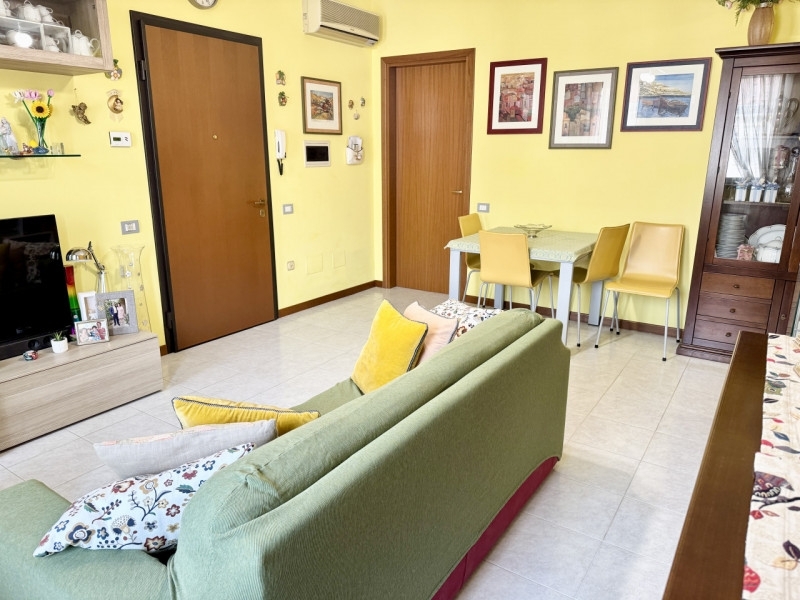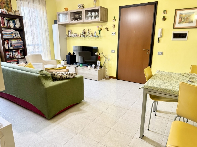 San secondo p.se: in zona residenziale, comoda a tutti i servizi del paese, appartamento posto al secondo piano composto da ingresso, soggiorno, cucina abitabile, due camere da letto matrimoniali, ampia loggia e bagno con vasca e doccia. Annessi cantina e garage al piano terra. Immobile dotato di climatizzatore. Palazzina priva di barriere architettoniche.