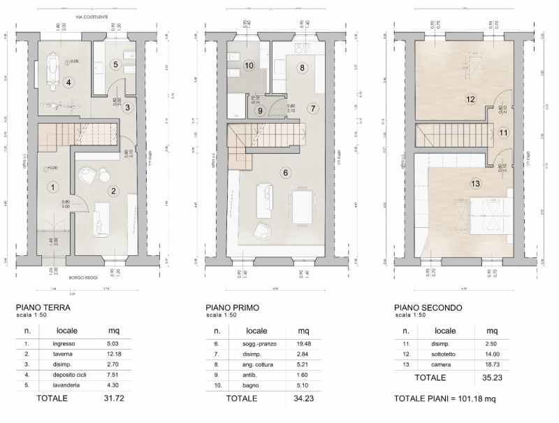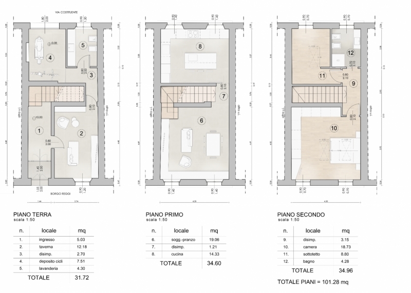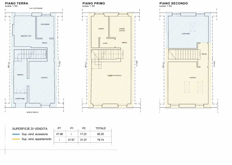 San secondo p.se: in centro storico, porzione di casa completamente ristrutturata con ingresso indipendente, disposta su tre livelli, cosù composta: ingresso, taverna, bagno/lavanderia e garage per deposito cicli/motocicli al piano terra;cucina, soggiorno e bagno al primo piano;due camere matrimoniali al secondo piano.immobile dotato di riscaldamento a pavimento, caldaia a condensazione, n. 3 predisposizioni per aria condizionata, basculante sezionale motorizzata, porta blindata, zanzariere e videocitofono.possibilità di personalizzare a piacimento finiture, capitolati e disposizioni interne.