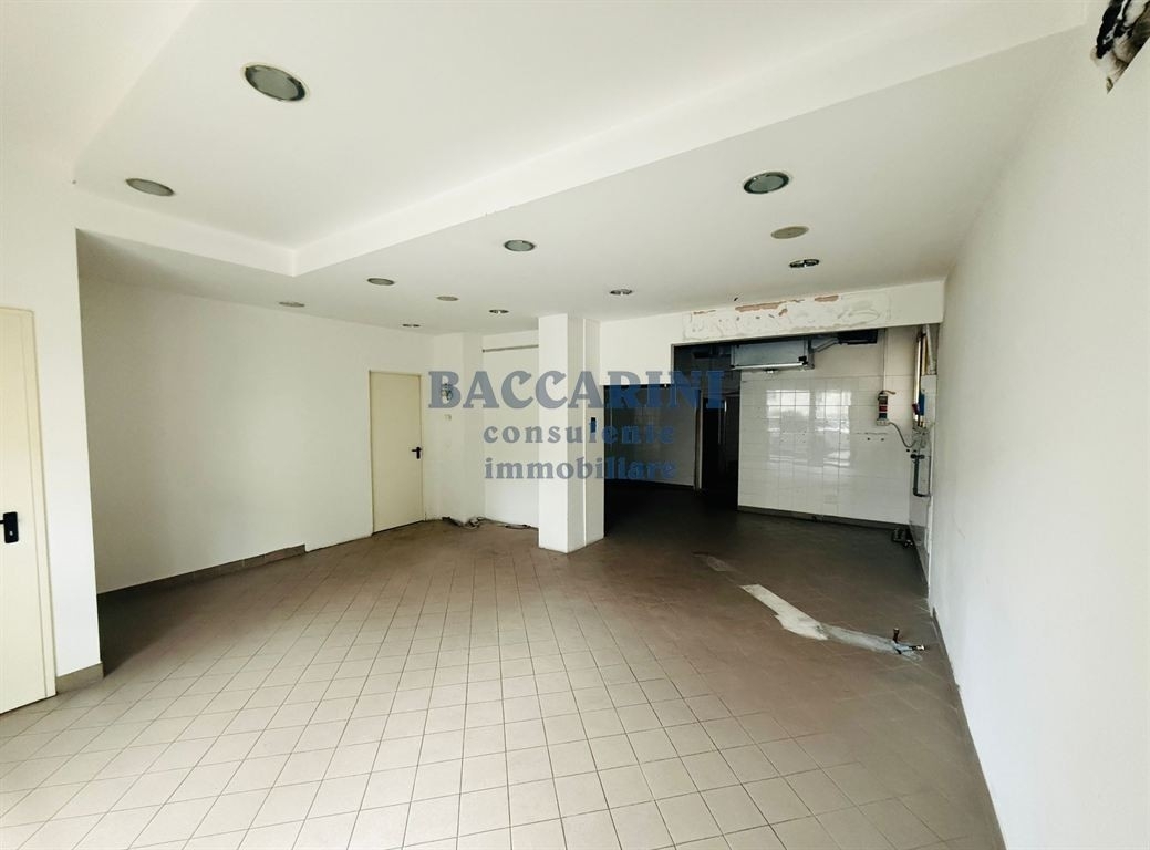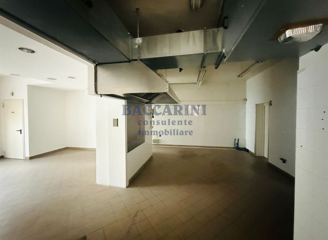 In zona di passaggio, si affitta ampio negozio di circa mq 93 al piano terra con vetrina e munito di canna fumaria. Ultima attività presente rosticceria e gastronomia da asporto. Spese condominiali circa euro 30,00 all'anno. Richiesta fideiussione bancaria. L'immobile è intestato a persona giuridica, quindi il canone di locazione sarà soggetto ad iva. Pronta consegna.