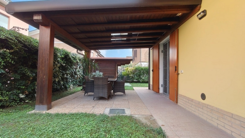 Cg057 - per info e visite contattare flavia proponiamo in vendita porzione di casa indipendente posta in una strada chiusa in zona residenziale a campagnola.al piano terra troviamo un'area cortiliva di 227 mq che copre tre lati dell'abitazione, un'autorimessa di 26 mq con lavanderia e un disimpegno dal quale si può accedere direttamente alla cucina abitabile, ampia sala e sottoscala. Nelle finestre e porte finestre del piano terra troviamo tutte le inferriate apribili. Salendo per la scala interna si arriva al primo piano dove abbiamo due camere matrimoniali, balcone, una camera tre quarti e un bagno. Al secondo piano troviamo un terzo bagno e varie stanze e ripostigli a sottotetto.l'immobile è munito di cancello elettrico e autorimessa con basculante motorizzato, antifurto perimetrale sia interno che esterno, è stato fatto il cappotto e ritinteggio esterno ed interno nel 2016, infissi doppio vetro in legno e zanzariere a tutte le finestre.su richiesta possibilità di arredo!