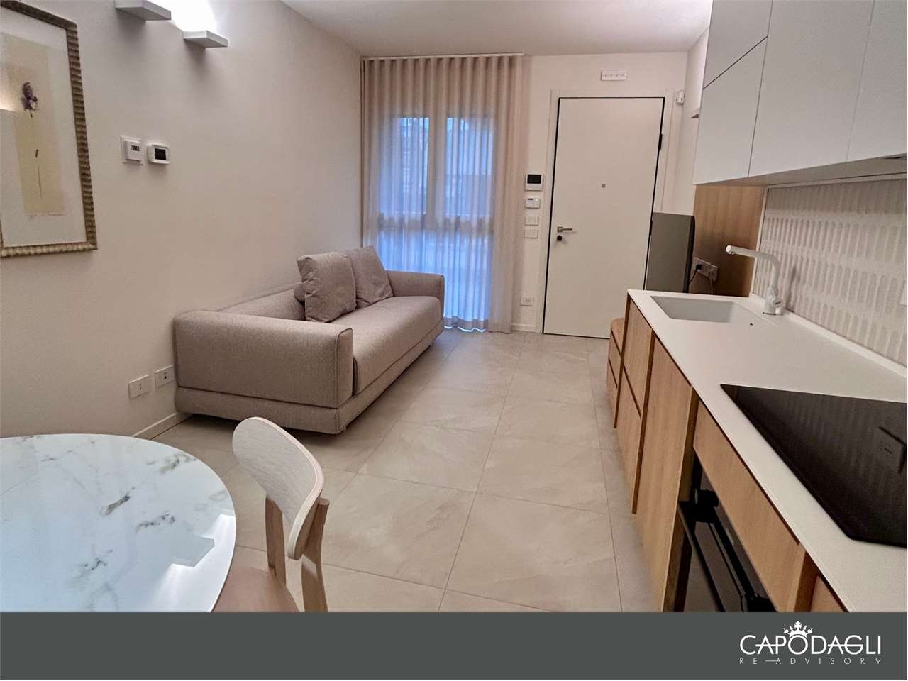 Riccione : appartamento edificato nel 2024, composto da 1 camera matrimoniale,1 camera singola, 1 soggiorno con zona cottura, 1 bagno e scoperto esclusivo. L' appartamento posto al piano terra di un' elegante palazzina di 8 unità abitative ha l' ingresso indipendente ed uno giardino esclusivo di 20 mq. ubicato a pochi passi dal mare e dal centro, vicino ai principali servizi, accessoriato di posto auto interno. l' immobile viene venduto completo di arredamento. Per ulteriori informazioni e visite all' immobile contattare l' immobiliare capodagli re advisory al numero classe energetica: 10,39 kwh/m3 a