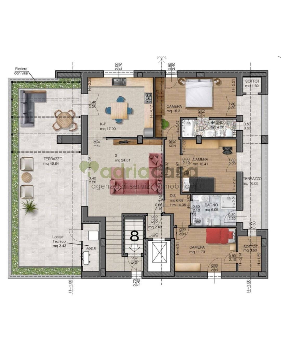 ATTICO DI NUOVA COSTRUZIONE A 800 MT. DAL MARE - RICCIONE ADIACENZE PARCO - Nelle adiacenze dalla zona Parco di Riccione, nasce un attico di rara bellezza e modernità, ideale per chi cerca il massimo in termini di comfort, spazio e tecnologia. Situato al secondo ed ultimo piano, l'immobile si apre su un ampio e luminoso soggiorno, affiancato da una cucina abitabile e da un disimpegno che conduce alla zona notte: camera matrimoniale con bagno privato, due ulteriori camere da letto e secondo bagno. Gli ambienti sono pensati per offrire funzionalità e privacy, in un contesto raffinato e silenzioso. La vera protagonista è la splendida terrazza di 50 mq collegata alla zona giorno: un'oasi privata dove installare una piscina idromassaggio, creare una zona pranzo all'aperto o rilassarsi su comodi divanetti. Anche la zona notte gode di un secondo terrazzo riservato, per vivere appieno ogni momento della giornata all'aria aperta. L'attico sarà realizzato in classe energetica A4 e dotato di impianti di ultima generazione: riscaldamento a pavimento, climatizzazione, fotovoltaico e isolamento termico per un'efficienza energetica senza compromessi. Possibilità di acquistare garage e posti auto separatamente. Richiesta pari ad euro 960 mila, leggermente trattabili. Contattaci per maggiori informazioni o per fissare un appuntamento di visita!