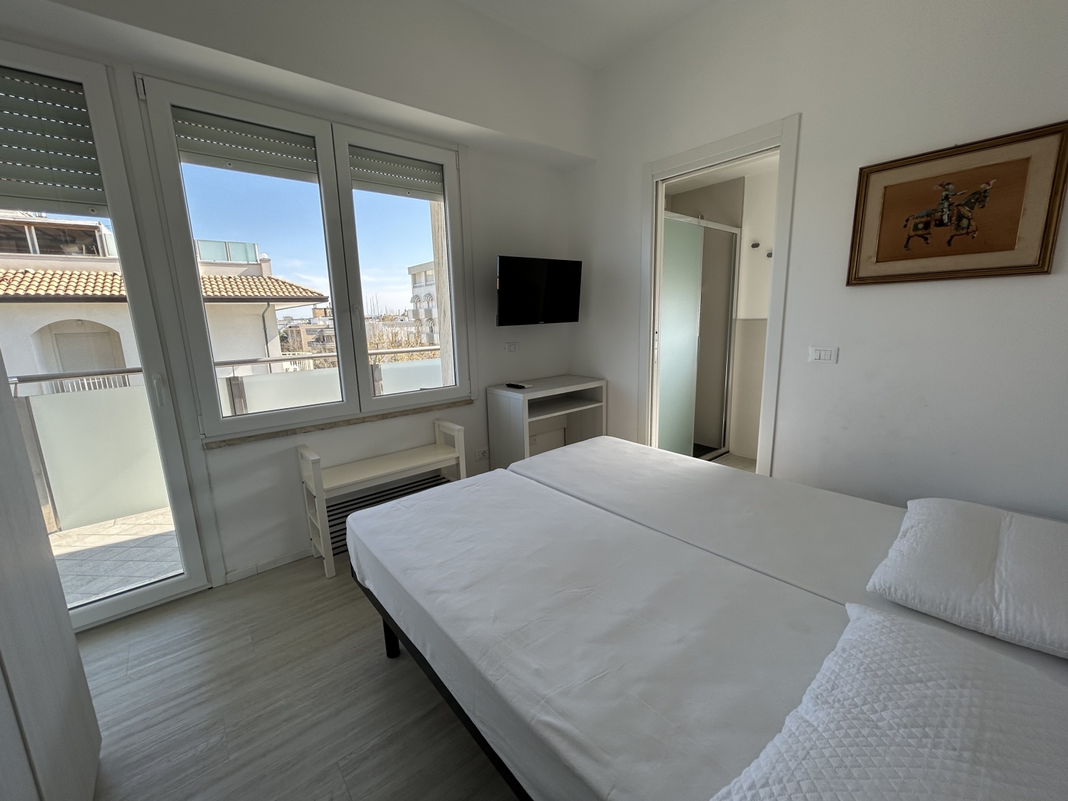 APPARTAMENTO ESTIVO VISTA MARE A POCHI PASSI DALLA SPIAGGIA - RICCIONE ALBA - AFFITTO ESTIVO - Affacciato direttamente sul mare, questo raffinato trilocale al quarto piano con ascensore ti accoglie in un contesto signorile con servizio di portineria, perfetto per vivere un'estate all'insegna del comfort e della tranquillità. L'appartamento, recentemente ristrutturato, conquista fin dal primo sguardo grazie alla luminosità degli ambienti e alla splendida vista mare. Il soggiorno con zona pranzo è uno spazio accogliente e ben organizzato, ideale per momenti di relax o convivialità, mentre la cucina moderna con piano a induzione e forno a microonde rende ogni dettaglio pratico e funzionale. Le due camere matrimoniali garantiscono comfort e privacy, con una camera dotata di bagno privato, a cui si aggiunge un secondo bagno a servizio dell'abitazione. I due terrazzi rappresentano il vero valore aggiunto: uno regala una suggestiva vista mare, perfetta per colazioni all'alba o aperitivi al tramonto, mentre l'altro offre uno spazio riservato per godersi l'aria aperta in totale relax. Completa la proprietà un comodo posto auto coperto, aria condizionata con pompa di calore caldo/freddo e lavatrice, per un soggiorno senza pensieri. Disponibile per la stagione estiva: luglio euro 2900, agosto euro 3900, settembre euro 2200, oltre spese d'agenzia. Una soluzione ideale per chi desidera vivere Riccione fronte mare, in un appartamento curato, elegante e pronto da abitare. Contattaci ora per maggiori informazioni o per fissare un appuntamento di visita!