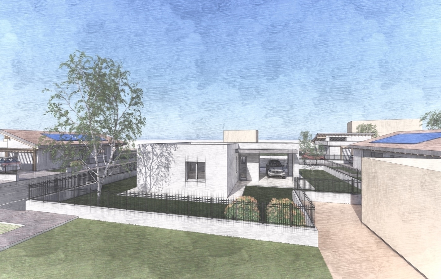 A porcia, in zona semicentrale tranquilla e servita, proponiamo moderna villa indipendente di nuova costruzione, sviluppata tutta su un unico livello, ideale per chi desidera una casa efficiente, comoda e di qualita'.l'abitazione, di circa 92 mq abitativi, sorge su un lotto privato di 450 mq e colpisce per il suo design contemporaneo e le tecnologie impiantistiche di ultima generazione, che garantiscono massimo comfort e risparmio energetico.l'ingresso si apre su un ampio soggiorno con cucina open space, luminoso e con uscita diretta nel terrazzo esterno, perfetto per pranzi all'aperto e momenti di relax. La zona notte, ben disimpegnata, ospita due camere, due bagni (di cui uno adibito a lavanderia) e due climatizzatori che assicurano comfort in ogni stagione.all'esterno troviamo un giardino di circa 350 mq che avvolge la casa su quattro lati e un portico coperto per l'auto, comodo e funzionale.dal punto di vista tecnico e prestazionale, l'immobile si distingue per la classe energetica a4, con 6 kw di pannelli fotovoltaici, 10 kw di batterie di accumulo, riscaldamento a pavimento, serramenti triplo vetro e zanzariere gia' installate.una soluzione moderna, efficiente e pronta a offrire il massimo benessere abitativo, perfetta per chi cerca una casa nuova, indipendente e sostenibile, a brevissima distanza dal centro di porcia.