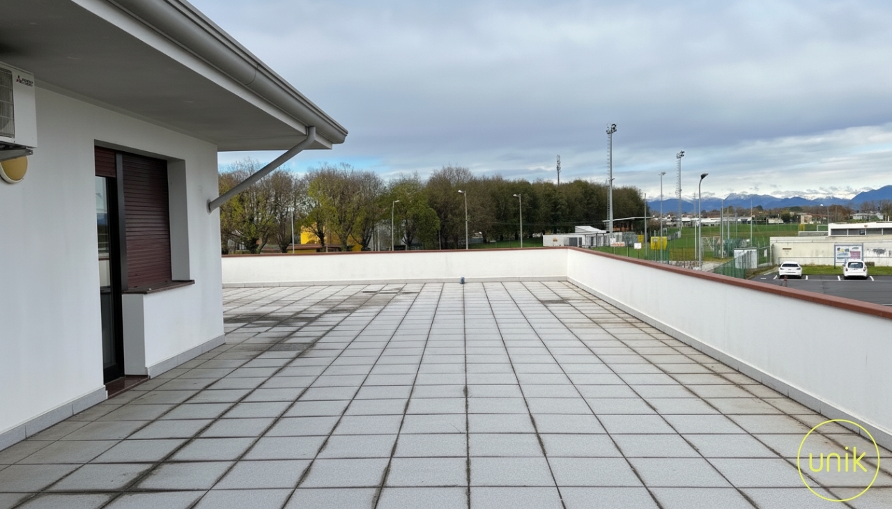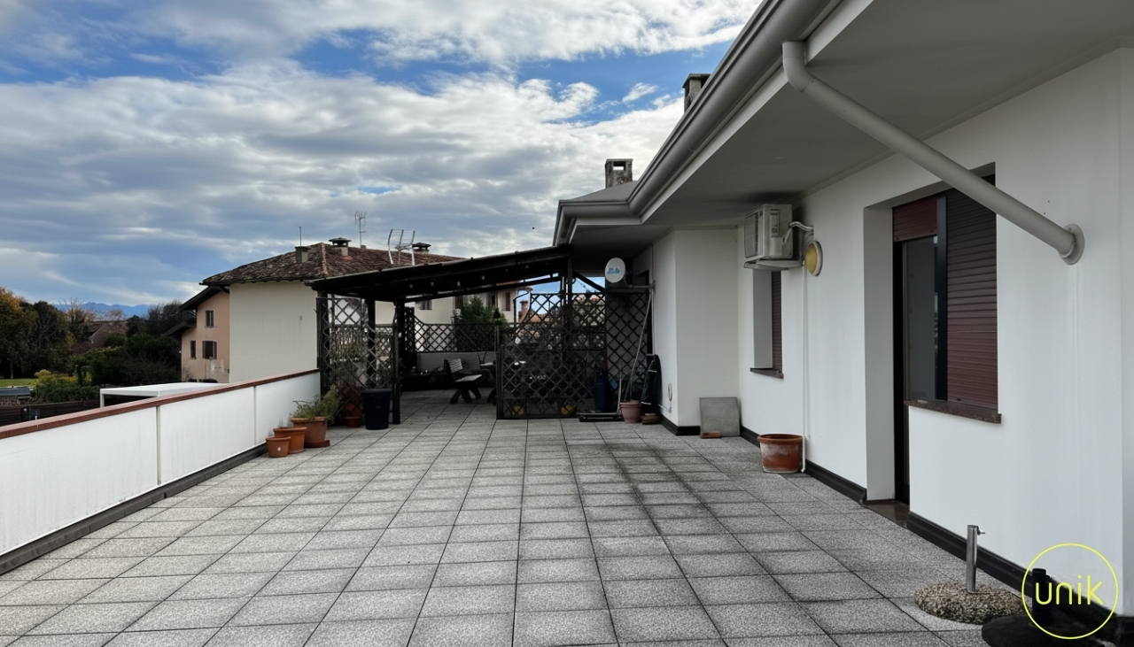 a pradamano, in via chino ermacora, inserito in un tranquillo contesto residenziale, ben servito da scuole e impianti sportivi e che dista solo cinque minuti da udine, proponiamo in bifamiliare un appartamento di 150 mq situato al primo piano. L’edificio è composto da un magazzino al piano terra, non oggetto di vendita, e dall’abitazione al livello superiore, offrendo così la piacevole sensazione di vivere in un contesto e ingresso indipendente. L’immobile si sviluppa su livello unico e si compone di ingresso, soggiorno con caminetto e per chi ama cucinare una spaziosa cucina a propria disposizione. La zona giorno si apre su una terrazza di 200 mq, ideale da attrezzare con zona pranzo esterna, salottino outdoor o area relax, offrendo uno spazio comodo e funzionale per vivere l’esterno con praticità. La zona notte ospita le tre camere da letto, di cui una padronale con il proprio bagno, e un bagno di servizio. Si presenta in buone condizioni generali, anche se alcuni interventi di ammodernamento potrebbero restituirgli il suo potenziale. A completamento della proprietà si trovano una pratica cantina e un posto auto.