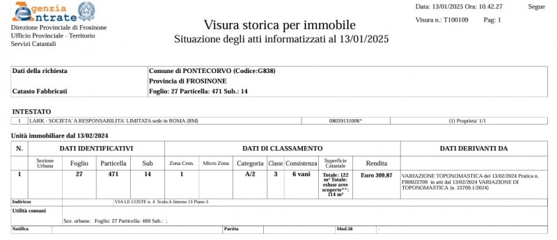 Appartamento all'asta a pontecorvo (fr)in zona perfettamente servita proponiamo un appartamento in vendita all'asta a pontecorvo (fr). L'offerta minima per l'acquisto è di 50625 €. Situato al 5° piano, l'appartamento è accessibile da via le coste e via xxiv maggio. Superficie di 122 mq, con posto auto coperto incluso. Per ulteriori dettagli, contattaci tramite i nostri recapiti.chi siamoimmobiliallasta.it aiuta le persone a comprare casa all'asta e migliorare la qualità della loro vita senza correre rischi, grazie ad una piattaforma specializzata in aste immobiliari sviluppata intorno alle vere esigenze di chi cerca casa all'asta e ad un team di 30 professionisti esperti dedicato, che ti guida passo passo in un acquisto sicuro e certificato da una tripla garanzia sull'immobile e sul servizio.a differenza delle agenzie troverai:+ varietà: gestiamo migliaia di immobili ogni mese+ tranquillità: tripla garanzia che ti tutela da ogni rischio sull'acquistoalcuni risultati oggettivi nell'ultimo anno e mezzo:- 8.600 immobili gestiti- +500 clienti portati all'asta- +200 case aggiudicate, per un valore totale di 15 milionicontattaci subito per parlare con uno dei nostri consulenti che ti aiuterà a trovare la tua casa all'asta senza correre rischi.