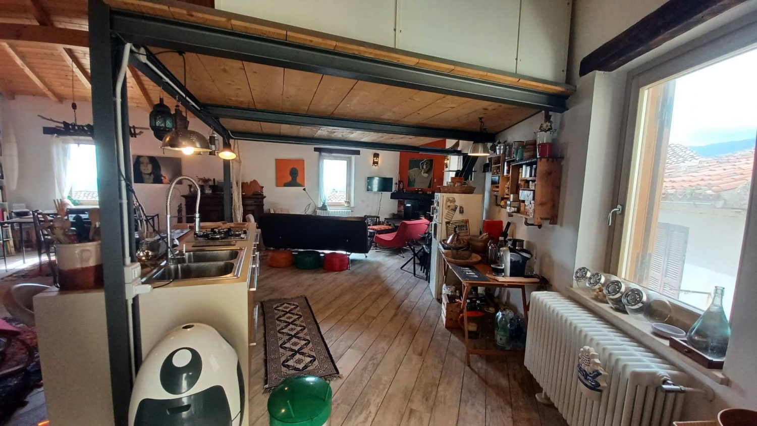 Maenza, in prossimità del duomo, vendesi splendido appartamento al piano primo di circa 80 mq con caratteristico soppalco che ospita il letto matrimoniale e armadio su misura. L'abitazione è composta da uno spazio completamente aperto, con panorama sul litorale pontino, cucina a vista con bellissima e praticissima penisola, bagno con doccia. Riscaldamento a radiatori, caldaia a metano. Camino, finestre e persiane in legno. Due piccoli balconi che si affacciano sulla splendida piazza del duomo, ripostiglio aperto sopra il bagno. Completa la proprietà una cantina unica nel suo genere di circa 100 mq con cortile esterno. L'arredo dell'abitazione è da considerarsi a parte, €