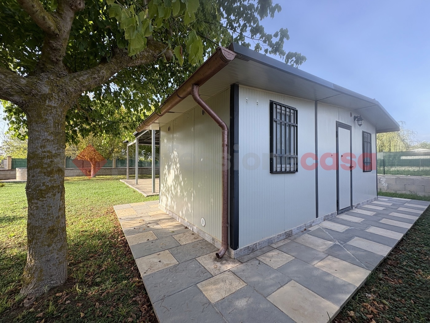 Terracina-str. Prov. Circeo: a 1.3 km dal mare!all'interno del residence ?i pioppi?, in posizione riservata e tranquilla, proponiamo in esclusiva la vendita di questo graziosissimo prefabbricato della superficie di 30 mq. C. A. Immerso nel verde di un grande giardino privato che si estende per 600 mq. Ai quattro lati della proprietà accrescendone la piacevole atmosfera di pace assoluta.accediamo all'ampio giardino tramite il cancello carrabile dove troviamo lo spazio per parcheggiare più di un autovettura.perfettamente attrezzata per garantire il massimo confort di chi vi soggiorna, tanto negli interni quanto negli spazi outdoor, la casa offre come plus esclusivi una splendida zona coperta da una tettoia di 50 mq. Progettata per momenti di relax, un?attigua zona barbecue, una doccia esterna ed una roulotte con tre stanze da letto (6 posti letto) ed una piccola zona cottura, tutto all?interno del curato prato all'inglese, adornato da piante ed alberi ad alto fusto.all'interno il prefabbricato è composto da una cucina, un bagno con doccia, una stanza attualmente adibita a ripostiglio.la proprietà si presenta in buono stato manutentivo, con impianto di condizionamento, gas con bombola, pozzo per l?acqua e allaccio rete fognaria oltre predisposizione per illuminazione lungo il perimetro del giardinol'immobile si presta ottimamente sia come casa vacanza che come investimento da mettere a reddito. Costi di residence euro 500 circa.importante: possibilità di acquistare l'altra meta del lotto di 600 mq. Recintato al prezzo di euro 25.000, 00.