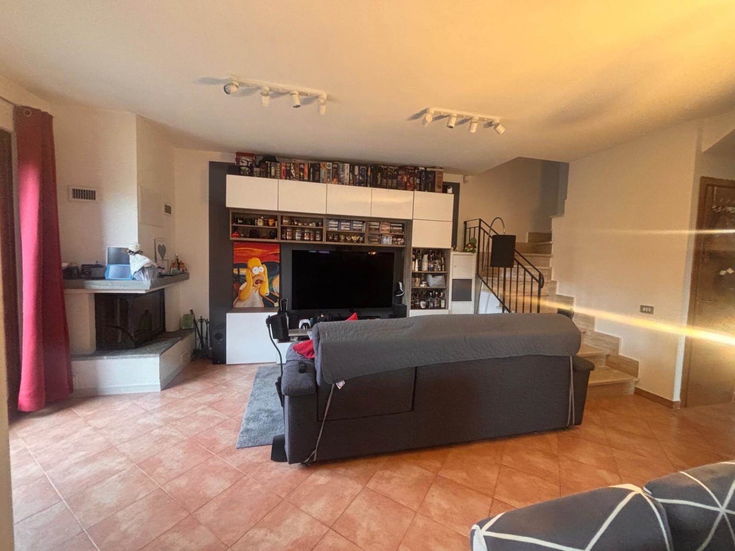 Via di scoranello, proponiamo in vendita una porzione angolare villino disposto su due livelli, in contesto residenziale; ingresso carrabile e pedonale. Al piano terra troviamo un soggiorno con camino e cucina a vista, e un bagno con vasca, portico e giardino di ca 200 mq con irrigazione e casetta per ricovero attrezzi, al piano superiore, due camere da letto e bagno con doccia. l'immobile è in ottimo stato, dotato di condizionatori, camino termoventilato, pannelli radianti, portoncino blindato, grate e zanzariere e allarme. Spese condominiali 300 euro annue. classe energetica: g