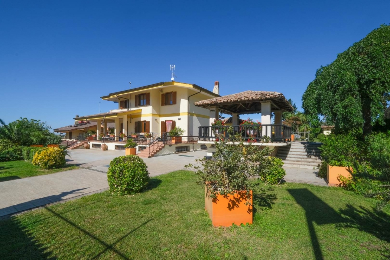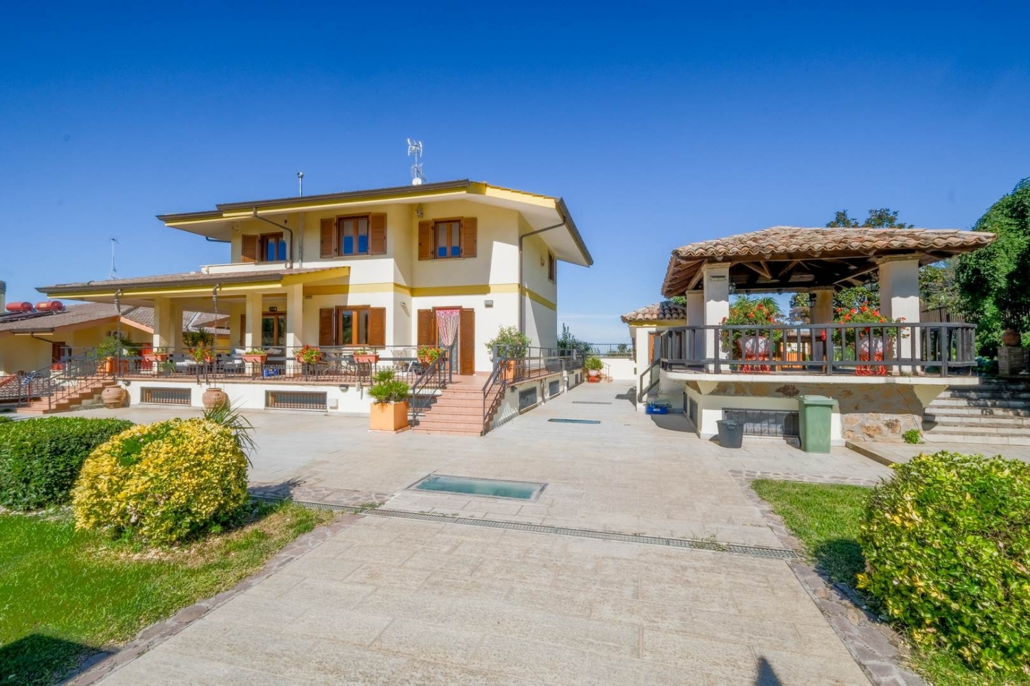 Frascati immobile di pregio in vendita.visita subito questo immobile con il nostro virtual tour 3d facendo copia e incolla del link : https://my.matterport.com/show/?m=zsvhabefqeq l'immobile è composto da 4 piani, adatto per residenza, casa vacanze, o b&b, sito in un complesso residenziale di recente ristrutturazione, villa circa mq. 600, su 4 livelli, 2 ingressi uno indipendente con cancello automatico, ampio parcheggio esterno. Giardino mq.1.500 con vista roma, recintato da mura, completamente illuminato, comprensivo di piscina con annesso immobile composto da 2 locali; rimessa accessori, spogliatoio e attrezzi da giardino. Completa l'esterno un gazebo in muratura tetto in legno di castagno con tetto a travo di monaco, copertura a coppi antichi originali provenienti da trastevere. P.t.; ca mq. 115, salone, camino, camera, cucina, tinello, bagno, 2 terrazze, 4 ingressi, ogni piano con utenze indipendenti, aria condizionata, tv. (possibilità appartamenti indipendente). P.1 mq 105, 4 camere matrimoniali, di cui 1 con bagno, terrazza e cabina armadio, 3 camere matrimoniali, con bagno. P.s1, 'sala hobby', ca mq. 165, finestrata con annessa terrazza di ca mq. 85, caminetto, forno per le pizze. Rimessa auto mq. 35, collegato al garage, magazzino mq. 150 ca, altezza mt 6,00, con ingresso indipendente mediante serranda automatica, ideale per 3 auto. Taverna rustica di circa mq 95,00, composta da bagno, cucina, due dispense, camera matrimoniale, sauna, ampio salone, con ingresso alle grotte naturali bonificate e ristrutturate, posto per duemila bottiglie di vino a alimenti da conservare in modo naturale. Dalla taverna si accede all'autoclave, che pesca acqua dal pozzo, per uso domestico, con depuratore, irrigazione automatica del giardino. Impianto di riscaldamento funziona con 5 tipi di combustibile. Immobile e completamente allarmato videosorvegliato, tutto il perimetro esterno e interno, collegato con le forze di sicurezza. Immobile è ubicato fra i vigneti dei castelli romani, 5 minuti ingresso autostrada roma sud, metro c, stazione ferroviaria tot vergata, a 600mt fermata del autobus, a due kilometri centro commerciale, posta, palestra, ristoranti, pizzerie, a 500mt b&b con cantine per assaggi vino, a tre kilometri dal centro di frascati. Possibile rendita annuale eu. 40.000,00. Classe energetica: g epi: 3,515 kwh/m2 anno