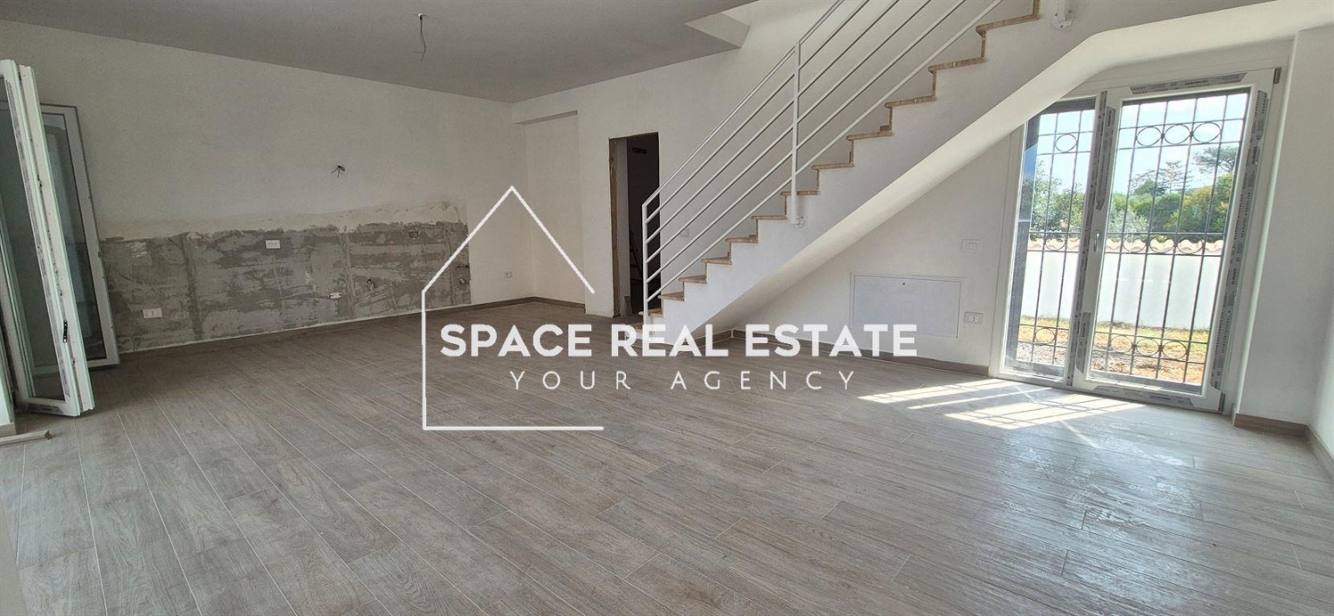 Proponiamo in vendita splendida villa bifamiliare di nuova costruzione, disposta su 2 livelli per una superficie complessiva di 110 mq circa e cosi composta: ampio soggiorno, angolo cottura, bagno, camera, portico coperto, giardino esclusivo di 300 mq ca. E area pavimentata che permette di parcheggiare diverse auto al suo interno al piano terra; camera matrimoniale, cameretta, bagno e due balconi al piano primo. Dotate di impianto termoautonomo, portone blindato, infissi in pvc doppio vetro, videocitofono, impianto fotovoltaico, grate e persiane in ferro zincato antiscasso, betonella come pavimentazione nella corte esclusiva, gres porcellanato di prima scelta come pavimentazione, gres porcellanato prima scelta come pavimentazione e rivestimento nei bagni.