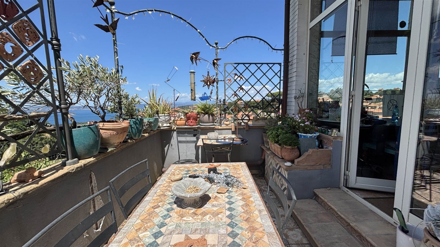 In vendita nel centro di montefiascone, in via o. Borghesi, con eccezionale vista sul lago di bolsena proponiamo una porzione di splendida villa degli anni '40 con curatissimo giardino.la porzione si compone di 2 livelli, primo e secondo piano, ma con accesso da un passaggio a ponte, mimitizzato nella ricca vegetazione del giardino con soli 4 gradini per la zona giorno. entrando troviamo una ampia terrazza panoramica d'ingresso al salone doppio, un disimpegno da dove si accede alla cucina, al bagno ed a una camera matrimoniale con bagno interno;al piano superiore troviamo altre 3 camere doppie, tutte con bagno interno e un salottino oltre ad una ulteriore terrazza abitabile ancor più panoramica.il giardino, ricco e curato, è di mq 200 ca. Una vera rarità nel centro del paese con una bella vista sul lago di bolsena.la proprietà è rifinita con cura dei dettagli e la posizione centrale con un giardino, il panorama, nè fanno una rara opportunità. ideale anche per una attività ricettiva.non perdere l'occasione di visitare questa meravigliosa proprietà a montefiascone! classe energetica: g