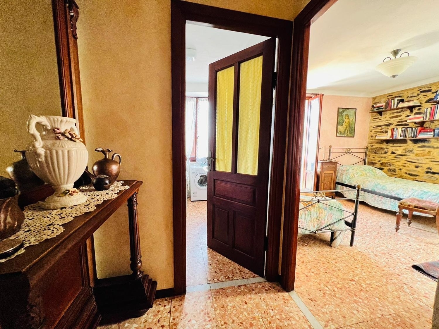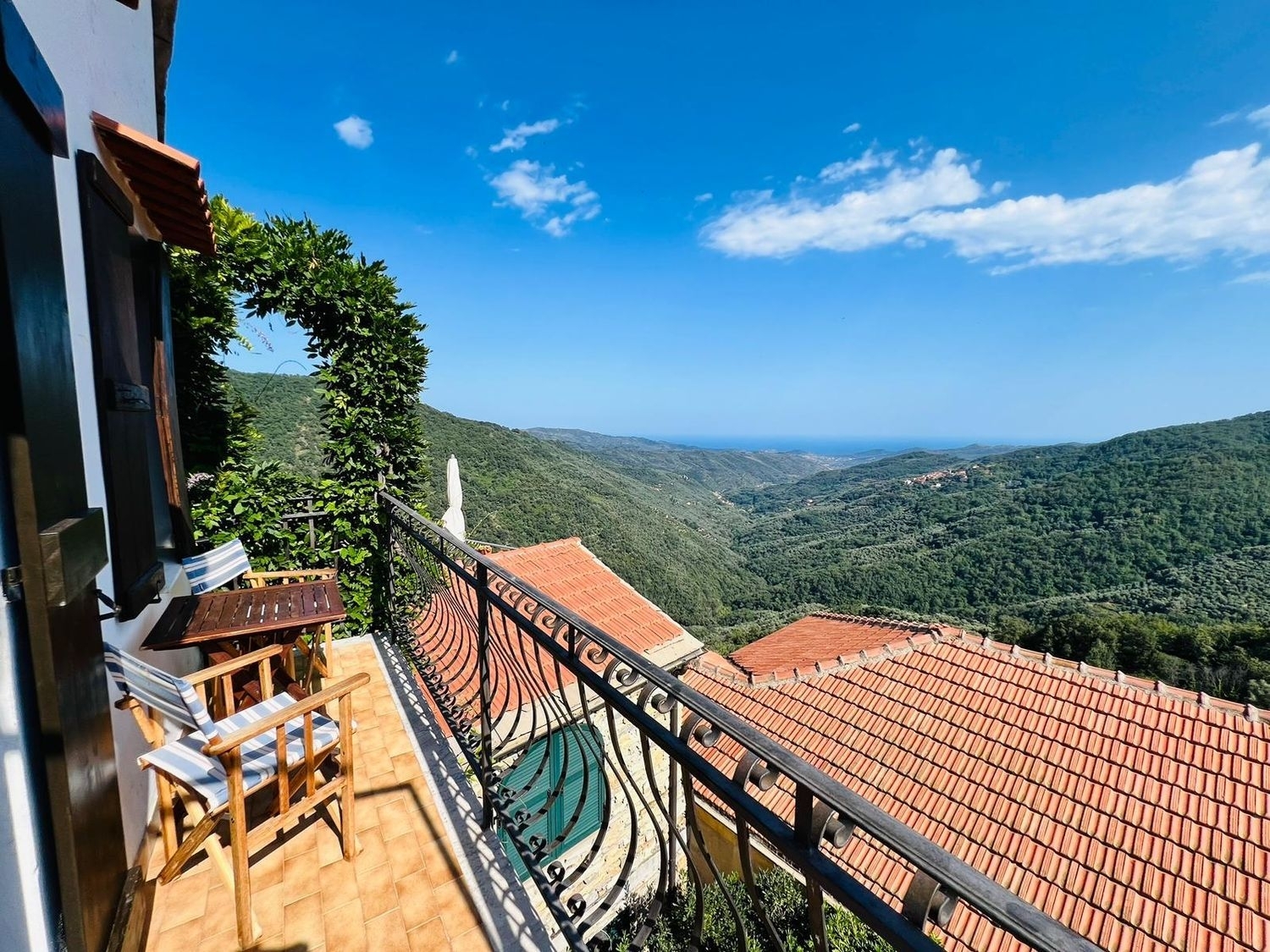 Villatalla - nel rigoglioso entroterra ligure, casa indipendente disposta su due livelli con balcone e splendida vista mare. al pian terreno l'immobile è composto da ingresso su disimpegno, cucina con camino funzionante ed ampio soggiorno, al piano superiore la zona notte è composta da un bagno finestrato e due camere da letto matrimoniali aventi sfogo su balcone con splendida vista sulla vallata e sul mare. l'immobile viene venduto arredato ed è caratterizzato da travi in legno a vista e pareti in pietra. al piano seminterrato è presente una pratica taverna. possibilità di acquisto di un ampio giardino piantumato e terreni a circa 300 metri dall'immobile. tutti gli impianti sono autonomi, non ci sono spese condominiali.
