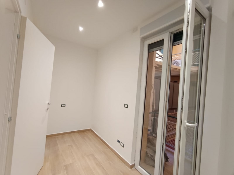 In vendita nel cuore di sanremo, in via volta e a soli 150 metri dalla centralissima piazza colombo, proponiamo un trilocale completamente ristrutturato situato al primo piano di una palazzina dotata di ascensore. L'appartamento si sviluppa su circa 60 mq ed è composto da ingresso che conduce ad un luminoso soggiorno con angolo cottura, camera matrimoniale, cameretta ideale come studio o stanza per bambini, bagno moderno finestrato con doccia e rivestimenti attuali nei toni del grigio. Gli ambienti sono caratterizzati da pavimentazione effetto legno chiaro che dona calore e modernità agli spazi; l'illuminazione a faretti led incassati garantisce comfort visivo ed eleganza contemporanea. Dalla zona giorno si accede direttamente all'ampia terrazza vivibile di circa 20 mq: uno spazio esterno perfetto per momenti di relax o convivialità all'aperto.la posizione strategica permette di vivere il centro città comodamente a piedi: tutti i servizi principali (negozi, scuole, trasporti pubblici) sono raggiungibili in pochi minuti. Le contenute spese condominiali (solo €40 mensili) rendono questa soluzione particolarmente interessante sia come prima casa sia come investimento immobiliare grazie alla forte richiesta locativa della zona centrale.non perdere l'occasione unica di abitare o investire in una proprietà moderna dal grande valore aggiunto dato dall'esclusiva terrazza! per maggiori informazioni o per fissare una visita contatta subito la nostra agenzia.