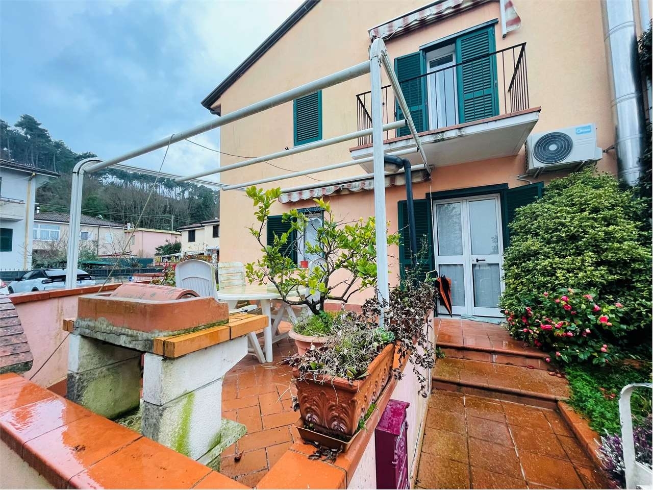Cerchi una villetta al prezzo di un appartamento? progetti e case ha la soluzione per te! ameglia piano ottima collocazione per questa villetta a schiera in ottimo stato e sviluppata su due livelli oltre a mansarda, cosù distribuita:al piano terra troviamo l'ingresso indipendente da vialetto di accesso, spaziosa corte pavimentata e già provvista di tenda da sole per poter godere di momenti in tranquillità, ingresso nel soggiorno con zona pranzo, cucinotto separato, locale lavanderia/bagno, scala di accesso al piano primo due camere da letto di cui una con terrazzo e tenda da sole, bagno con doccia, scala a chiocciola che conduce alla mansarda, grande open space da adibire a terza camera oppure studio.completa la proprietà una grande cantina e un bel posto auto.oggetto in ordine, valido come prima o seconda casa.richiesta €. 199.000,00 classe energetica: e 74 kwh/m3 a