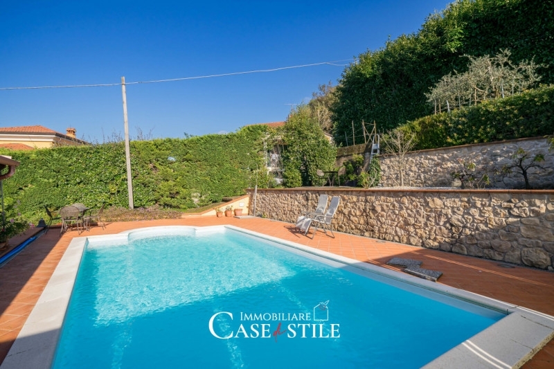 Nella primissima periferia di sarzana, a pochi passi dal centro storico ma immersa nella quiete e nel verde, proponiamo in vendita una splendida porzione di villa bifamiliare di circa 310 mq, caratterizzata da finiture di altissimo livello e da un'eleganza senza tempo.la proprietà si distingue per i dettagli ricercati: pavimenti in parquet di ciliegio anticato, ceramiche di vietri e bagni rivestiti in marmi pregiati, tra cui verde guatemala e rosa portogallo, che conferiscono calore e raffinatezza a ogni ambiente.al piano d'ingresso si apre un ampio salone triplo, luminosissimo e accogliente, un bagno di servizio finemente rifinito e la cucina abitabile di generose dimensioni con accesso diretto alla zona esterna coperta,ideale per pranzi e cene all'aperto, al primo piano si sviluppa la zona notte, composta da tre camere da letto, ciascuna con bagno privato, e, nella master bedroom troviamo anche un ampio locale studio/guardaroba privato, perfetta per chi desidera spazi riservati e funzionali.il piano seminterrato è una vera e propria oasi di relax, con una splendida taverna caratterizzata dal camino e dal forno a legna in cotto, un ampio spazio conviviale con angolo bar, e una zona benessere privata dotata di sauna finlandese e doccia con cascata fredda, vasca idromassaggio al centro della stanza con proiettore automatizzato a scomparsa frontale ad essa, per momenti di puro relax e intimità.all'esterno, la proprietà è completata da una piscina a sfioro di nuova realizzazione, un ampio portico coperto attrezzato con barbecue e area pranzo esterna, un garage per moto, oltre a un'ampia zona parcheggio per più autovetture.l'abitazione, luminosissima e dotata di tutti i comfort moderni, vanta classe energetica b e impianti di ultima generazione.una soluzione esclusiva, perfetta per chi cerca una residenza elegante, spaziosa e riservata, a due passi dal cuore di sarzana ma con la tranquillità e il fascino di una villa indipendente.
