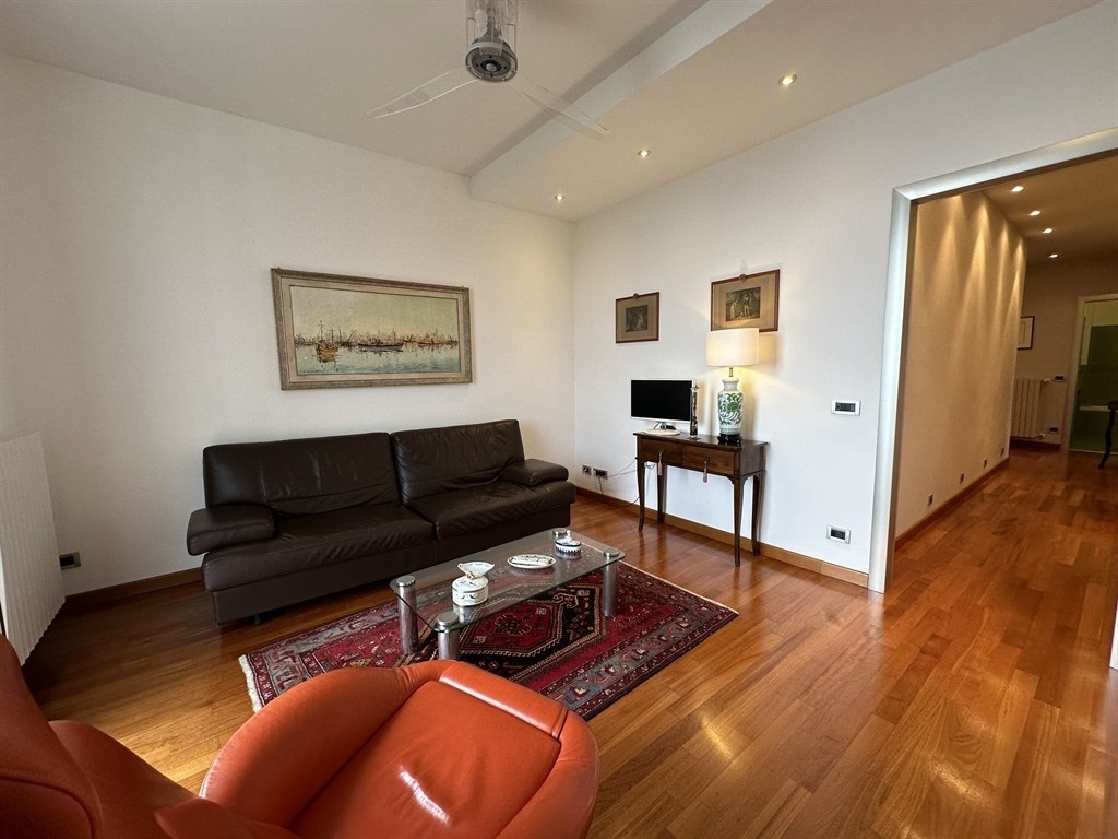 Nella splendida cornice di parco fuor del vento, alla sommità di via virgilio, abbiamo il piacere di presentare questo elegante alloggio con una meravigliosa vista mare. Attraverso una piccola corte privata si accede alla zona ingresso che affaccia su un disimpegno da cui parte il corridoio che conduce alle due camere (una con bagno esclusivo), al secondo bagno, al doppio salone ed alla cucina. La zona living è arricchita da due balconi con vista panoramica.pavimentazione in parquet, termoautonomo, parzialmente arredato.adiacente alla proprietà troviamo un giardino di proprietà esclusiva di circa 200 mq. Con una bellissima vista mare.nel prezzo anche un box di 30mq con soppalco (h.200), un posto auto ed un ripostiglio.