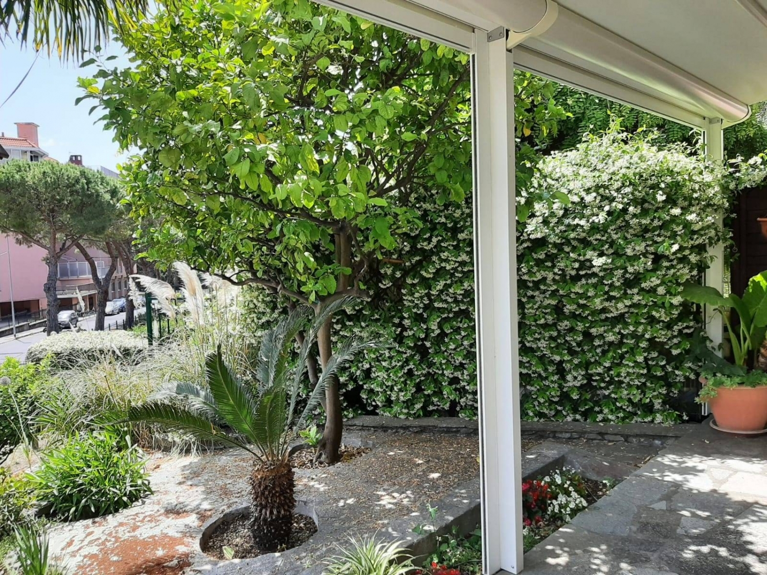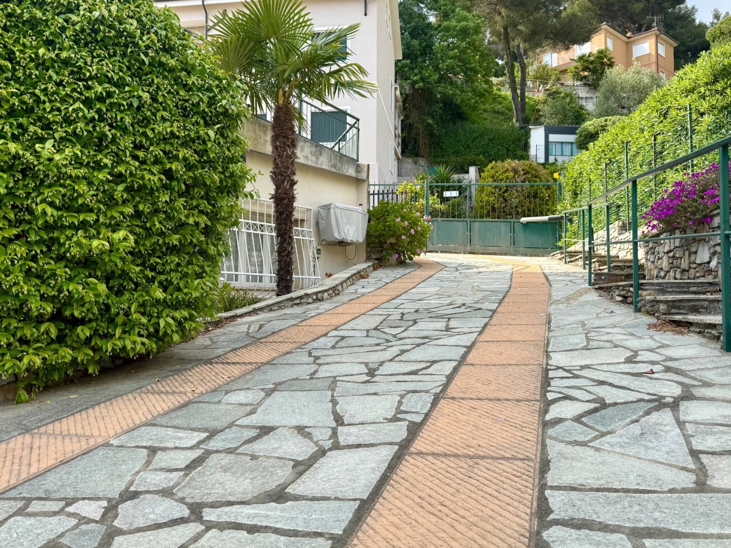 Andora centro - grande quadrilocale con giardino e posti auto, pochi passi dal mare.situato nella parte bassa di via mezzacqua, nel contesto di un quartiere residenziale tranquillo ma adiacente al centro cittadino ed alle spiagge, che distano meno di 500 metri, questo appartamento è internamente composto da ;ampio soggiorno, cucina, ampia camera matrimoniale, seconda camera, cabina armadio, lavanderia, doppi servizi rinnovati e spaziosa taverna. veri protagonisti dell'offerta sono gli spazi esterni, che offrono una superficie complessiva di oltre 100 mq suddivisi come segue ; due comode aree pranzo dotate di pergolati, tavoli e forno in muratura, un viale con accesso carraio indipendente , due posti auto scoperti, numerosi camminamenti e splendide aiuole fiorite posizionate in ogni angolo.giardini e terrazze sono rivestiti in pietra di luserna, ed ogni loro aspetto è stato studiato con cura evidente. vi sono due accessi, rispettivamente da via mezzacqua e da via san filippo, mentre all'interno della proprietà insistono due distinti portoncini d'ingresso.gli interni sono in ottimo stato, ed elementi quali a titolo di esempio infissi con doppi vetri, condizionatori, riscaldamento autonomo, servizi ristrutturati e addolcitore delle acque, rendono la casa adatta ad essere abitata nell'immediato.rara opportunità di un vero appartamento residenziale nel cuore di andora, con la possibilità di raggiungere tutti i servizi ed i principali punti d'interesse in pochi minuti di passeggiata pianeggiante.