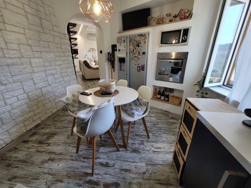 Nel caratteristico borgo di segno, a 10 minuti di auto da vado ligure, casa semindipendente ristrutturata libera su tre lati e da terra a cielo, dotata di giardino con accesso carrabile ove si può parcheggiare una macchina oltre terreno a fasce per un totale di c.a 500 metri. L'immobile, bilivello e dotato di due ingressi, è composto da ampio soggiorno con camino, la cucina abitabile, una camera ed un bagno finestrato con vasca idromassaggio al primo livello. La scala interna porta alla camera padronale dotata di bagno en-suite, cabina armadi e con accesso a grande terrazza panoramica. Collegata all'alloggio troviamo una cantina/taverna con forno, con ulteriore accesso indipendente. Completa la proprietà un gradevole giardino attrezzato e del terreno circostante, oltre a due magazzini. Il riscaldamento è autonomo con gas metano, è presente impianto di condizionamento e collegamento alla fognatura comunale