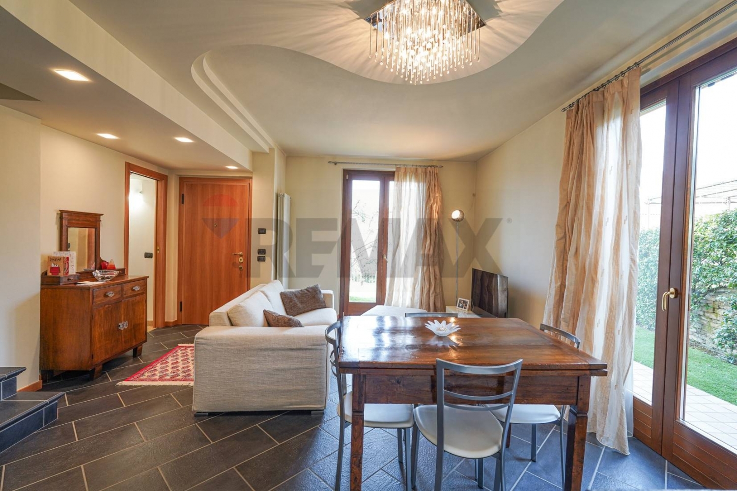 Elegante villa semindipendente con giardino e finiture di pregio a ponteranicasituata a ponteranica, nella tranquilla e ricercata zona residenziale di petos, questa raffinata casa semindipendente rappresenta la sintesi perfetta tra modernità e comfort.costruita nel 2007 e mantenuta in condizioni eccellenti, l'abitazione si sviluppa su tre livelli abitativi per una superficie complessiva di 225 mq. La proprietà garantisce massima privacy e indipendenza grazie ai doppi accessi privati, sia dal giardino che dal box.distribuzione degli spazi:piano seminterrato: il box doppio conduce direttamente all'ampia zona servizi. Qui troviamo una generosa lavanderia completa di doccia e sanitari, un locale ideale come taverna o zona hobby, e un'utile intercapedine sfruttabile come ripostiglio o deposito.piano terra: l'ingresso principale apre su una luminosa zona giorno con cucina a vista, impreziosita da eleganti pavimenti in gres porcellanato. Questo spazio, cuore della casa, si estende verso l'esterno grazie al patio e al giardino privato di circa 250 mq, un'oasi perfetta per il relax all'aperto.zona notte: ospita due luminose camere da letto caratterizzate da una calda pavimentazione in parquet e un bagno padronale con sanitari sospesi e vasca. Ogni dettaglio è curato con materiali di pregio e finiture di alta qualità.piano mansardato: l'ultimo livello accoglie un suggestivo sottotetto con travi a vista e pavimenti in parquet. Questo piano offre un ampio locale open space versatile, già dotato di impianto di aria condizionata per il massimo comfort termico, un ulteriore locale lavanderia e un incantevole terrazzo a pozzo, che garantisce totale riservatezza come solarium.dettagli tecnici e comfort:la casa è progettata per garantire benessere e sicurezza:infissi e oscuranti: serramenti in legno con vetrocamera per un isolamento ottimale e persiane in legno.sicurezza: impianto di videocitofono incluso.climatizzazione: riscaldamento autonomo a zone per un comfort personalizzato e sistema di condizionamento presente nel piano mansardato.spese: gestione condominiale estremamente contenuta, circa 35 euro mensili.completa la proposta il box auto doppio in larghezza.l'ottimo stato di conservazione e la posizione strategica, immersa nella quiete ma vicina ai principali servizi, rendono questa villa una soluzione imperdibile.contattaci per fissare un sopralluogo e scoprire dal vivo questa opportunità unica.