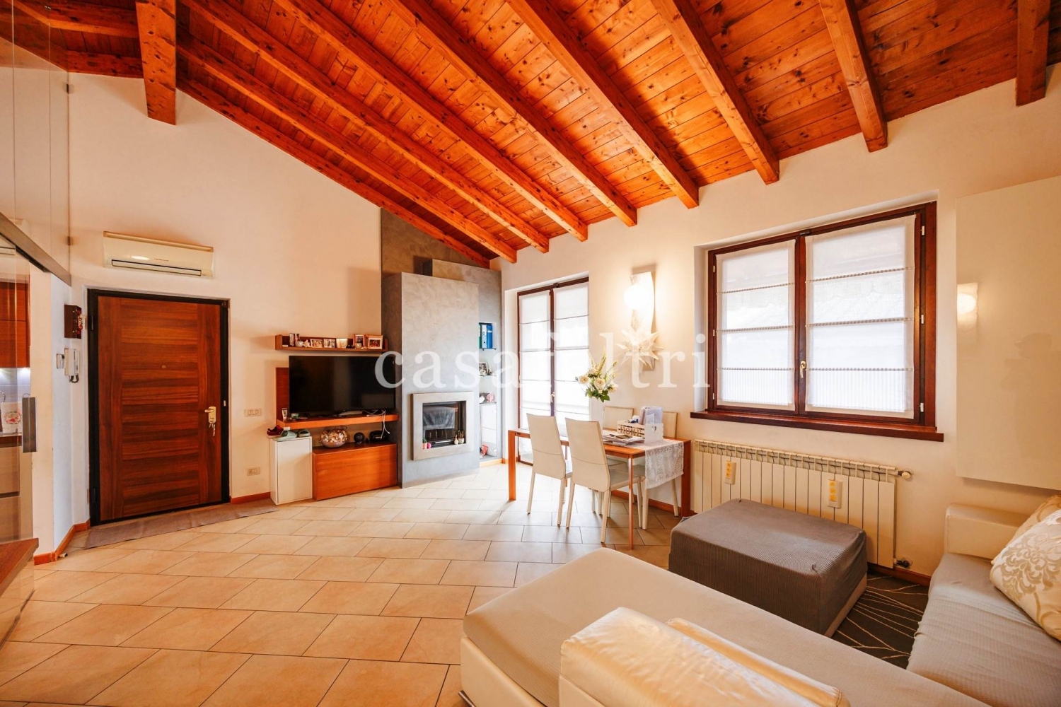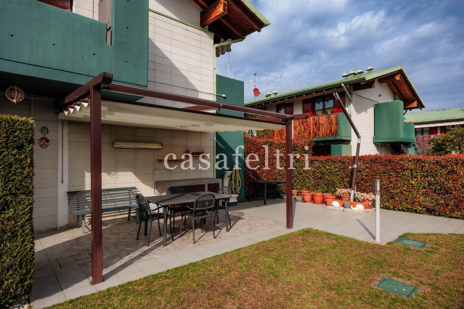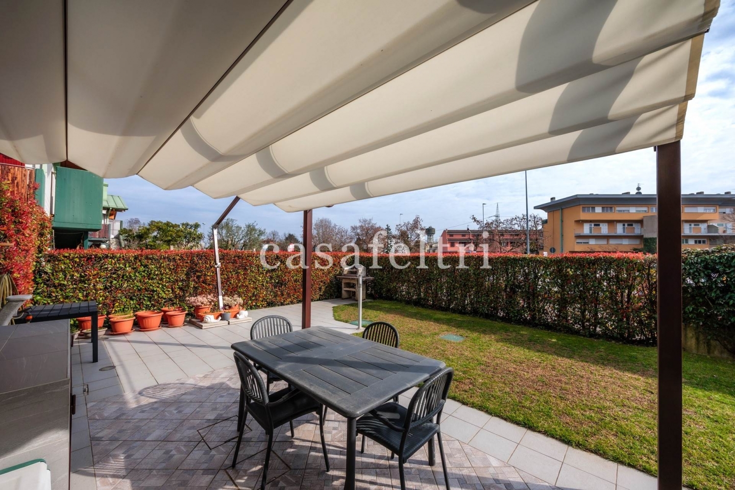In contesto residenziale, tranquillo e riservato, nel comune di zanica, a pochi minuti dalle principali arterie stradali, casafeltri propone in esclusiva moderno quadrilocale di testa, libero su 3 lati, in stabile di recente costruzione del 2009, egregiamente rifinito in ogni dettaglio.si accede all'immobile attraverso un ingresso indipendente che subito ci mostra un giardino ben tenuto, in parte pavimentato, di circa 160 mq, ideale per trascorrere momenti di pace e relax, con barbecue e magnifico pergolato.tramite una comoda scala si arriva al piano primo ove è ubicato l'immobile che è cosù disposto: ingresso sull'ampio soggiorno al quale si accede ad una grande terrazza vivibile, cucina abitabile e separata da una splendida vetrata, anch'essa con un balcone, disimpegno che conduce nella zona notte ove vi sono 3 camere da letto (una matrimoniale, una doppia e una singola ampia) oltre doppi servizi finestrati.il sole arriva in questa splendida proprietà tutto il giorno avendo un'esposizione est/sud/ovest.termoautonomo, aria condizionata con pompe di calore, cappotto esterno, impianto d'allarme perimetrale e volumetrico, zanzariere, tende da sole, camino a norma, impianti elettrici ed idraulici certificati... Sono solo altre caratteristiche di questa splendida soluzione che coniuga un'alta efficienza energetica ad ampi spazi interni ed esterni.richiesta: eu. 295 mila comprensiva di box doppio in lunghezza.possibilità di un altro box singolo nel complesso a parte dal prezzo.l'immobile sarà libero a 3 mesi dal rogito notarile.per qualsiasi ulteriore informazione prego contattare il o scrivere a classe energetica: b