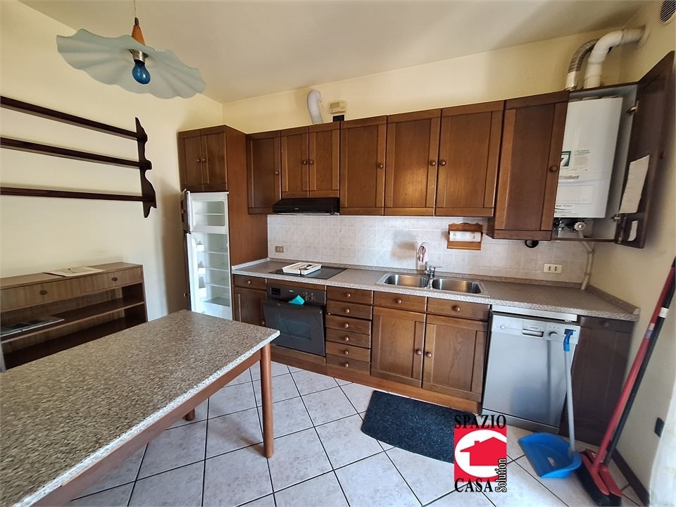 In grazioso e bentenuto contesto residenziale di complessive 10 unita' circa, posizionato a pochi passi dal centro paese, ma in una zona tranquilla e senza disturbi esterni, proponiamo un trilocale veramente in ordine al piano terra. Internamente e' composto da soggiorno e cucina separate, i locali si affacciano su un portico di circa 20 mq, a sua volta prospiciente al giardino privato di 70 mq. L'abitazione e' poi composta da due camere da letto (una matrimonisle), bagno con finestra , ripostiglio, balcone in zona notte. Al piano interrato ampia cantina di circa 10 mq, oltre ad autorimessa doppia/tripla di circa 35/40 mq. L'appartamento e' autonomo, servito da antifurto, canne fumarie, climatizzatore, nuova caldaia, luci di emergenza, impianto di irrigazione. - maggiori dettagli: porta blindata, cucina abitabile, cassaforte, sistema di allarme, portico, climatizzato