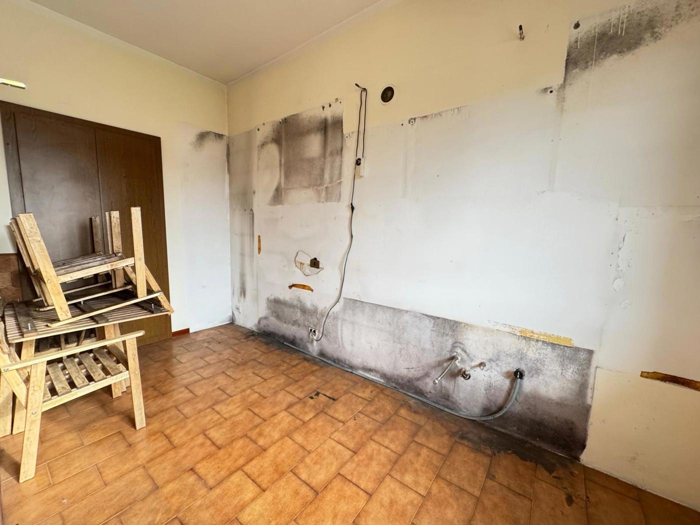 Chiari - poco distante dai principali servizi, in zona residenziale a ridosso della campagna clarense, proponiamo in vendita appartamento trilocale in contesto di tre unità senza spese di condominio. la soluzione è accessibile tramite scala condivisa da due unità e si compone di zona soggiorno con sfogo sul balcone, cucina semi abitabile separata e due camere da letto di cui una matrimoniale ed una singola ed un bagno finestrato. a completare, accessibile attualmente dalla scala comune, un sottotetto con altezza media di 2.85mt al rustico ideale per recuperare due camere da letto di ampia metratura. possibilità di posto auto coperto.nessuna spesa di gestione. Immobile da ristrutturare. possibilità di acquistare l'intera soluzione alla cifra di ? 275.000