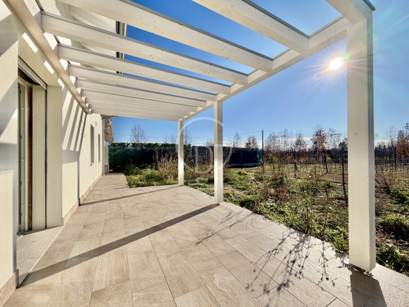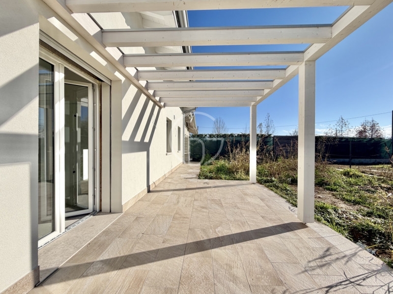 A desenzano del garda, in posizione a due passi dai principali servizi, proponiamo in vendita villino indipendente di nuova costruzione.l'immobile fa parte di un piccolo contesto residenziale senza spese condominiali ed è sviluppato su due piani fuori terra, tramite portoncino blindato si accede alla proprietà dove troviamo una spaziosa zona living separata dalla cucina, resa luminosa grazie all'ottima esposizione e alla parete vetro scorrevole che permette l'uscita al giardino privato con portico coperto, perfetto per godersi le giornate in compagnia in totale privacy.dalla zona giorno un corridoio conduce al reparto notte dove troviamo un bagno finestrato completo di doccia e due camere di cui una matrimoniale. Sempre dalla zona giorno si accede direttamente al garage e un vano dedicato a lavanderia e servizi igienici.una scala interna conduce al piano superiore mansardato dove troviamo una stanza ad uso ricreativo o da adattare in base alle esigenze, un bagno finestrato con doccia e un altro ampio vano da destinare a propria scelta. completa la proprietà un secondo posto auto esterno.l'immobile gode della massima efficienza energetica grazie a pompe di calore, cappotto, riscaldamento a pavimento e infissi di ultima generazione.disponibili per sopralluogo in cantiere.