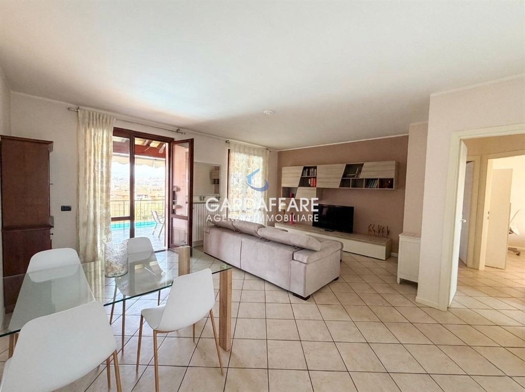 Manerba lago garda. in ottima posizione comodo sia al lago che al centro, all'interno di curato complesso con piscina: ampio appartamento trilocale al primo piano con spaziosa loggia e vista lago.l'appartamento è composto da spazioso e luminoso soggiorno con angolo cottura, camera matrimoniale, camera doppia e bagno. Completa la proprietà un box auto.richiesta: euro 440.000. C.e. 'd' ipe 127.43. Gardaffare Rif. 26-17.