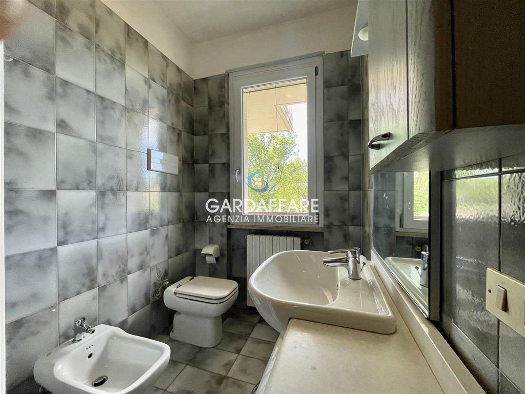 Manerba lago garda.in posizione tranquilla nelle vicinanze di tutti i principali servizi: porzione di bifamiliare disponibile all'interno di piccolo complesso residenziale con giardino e piscina condominiali.l'immobile è composto al piano terra da spazioso soggiorno con camino funzionante e cucina a vista con area pranzo, scala interna che conduce al piano superiore suddiviso in camera padronale con bagno privato, ulteriore camera doppia e camera singola, tutte con accesso al balcone esterno che circonda l'edificio e bagno. Infine, ampio box auto e cantina nel piano interrato. Ampia area piastrellata di pertinenza esclusiva con vista sulla piscina e sul giardino condominiale. interessante investimento, l'immobile e' locato fino al a euro 1000,00 al mese comprensivi di spese condominiali.richiesta: euro 399.000. C.e. In attesa di rilascio. Gardaffare Rif. 23-44a.