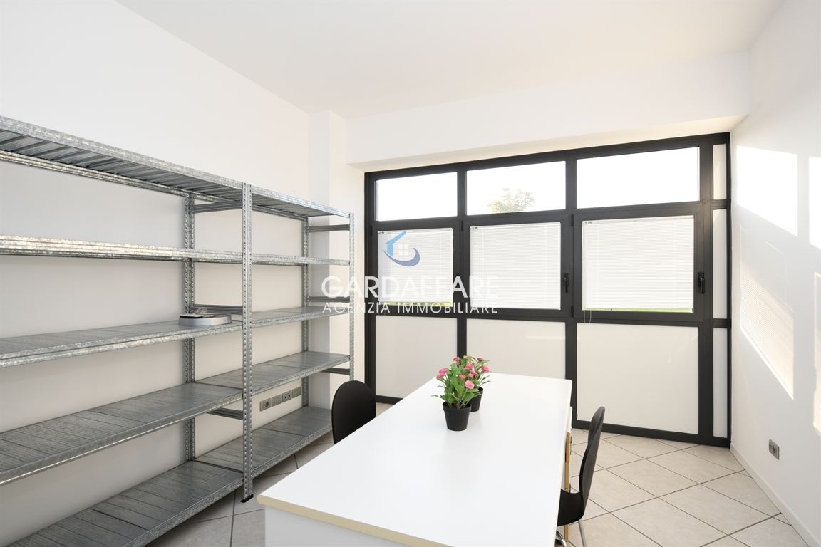 Manerba del garda. ampio locale ad uso ufficio al primo piano di un complesso commerciale di 5 unità fronte strada ad alta visibilità, composto da ingresso su ampio e luminoso locale openspace di circa mq. 60, tre uffici con ampie vetrate e bagno di servizio. Due posti auto pertinenziali. richiesta: euro 199.000. C.e. 'f' ipe 54.15. Gardaffare Rif. H