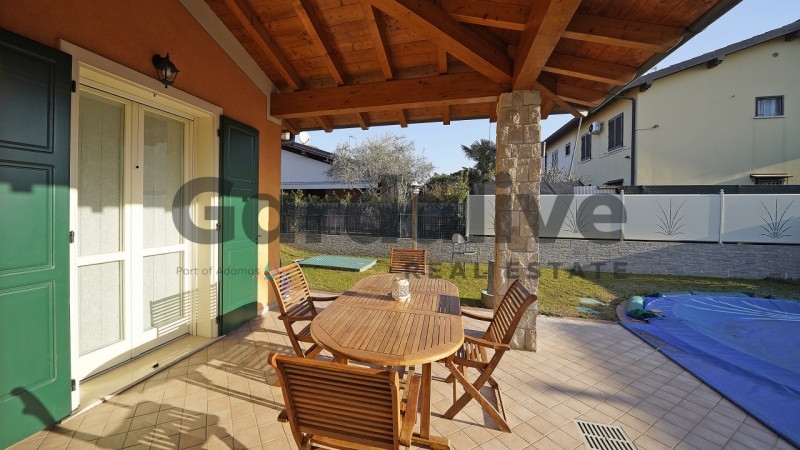 Nel cuore di manerba del garda, nella rinomata e sempre più richiesta zona di pieve vecchia, a soli 500 metri dalle spiagge, proponiamo una splendida porzione di bifamiliare libera su tre lati, inserita in un contesto residenziale elegante, tranquillo e riservato, composto prevalentemente da ville.l'abitazione, di recente costruzione e in condizioni impeccabili, si distingue per la grande luminosità degli ambienti, la qualità delle finiture e l'ottima vivibilità sia degli spazi interni che esterni.l'ingresso apre su una zona giorno ampia e accogliente, dove il soggiorno con camino dialoga perfettamente con la cucina a vista moderna e funzionale. Le grandi superfici vetrate donano luce naturale per tutto il giorno e accompagnano lo sguardo verso l'esterno, creando una continuità naturale tra interno ed esterno. Da qui si accede direttamente al grande portico coperto, un vero living all'aperto, ideale per pranzi, cene e momenti di relax in ogni stagione.il portico si affaccia sul giardino privato, perfettamente curato, che ospita una piscina privata già realizzata e funzionante, elemento raro e di grande valore nella zona. Un angolo riservato e silenzioso dove godere appieno del clima del garda, in totale privacy.la zona notte è ben separata e composta da due camere matrimoniali di generose dimensioni, entrambe luminose e ariose, oltre a un terzo locale estremamente versatile, perfetto come terza camera, studio, cabina armadio o spazio hobby, a seconda delle esigenze. Il bagno, finestrato, è dotato di una comoda doccia ed è rifinito con materiali di qualità.una scala interna collega direttamente l'abitazione al piano interrato, dove si trova un ampio garage doppio con zona lavanderia e spazi accessori ideali per deposito, biciclette e attrezzature, rendendo la casa estremamente funzionale anche come abitazione principale.l'immobile è dotato di riscaldamento autonomo, climatizzazione, camino, serramenti in ottime condizioni e non necessita di alcun intervento: è pronto per essere abitato da subito.questa proprietà rappresenta una soluzione ideale sia come prima casa di livello, sia come residenza per le vacanze sul lago di garda, grazie alla posizione strategica, alla vicinanza al lago e alla combinazione sempre più rara di giardino, piscina privata e indipendenza.