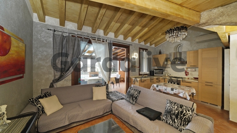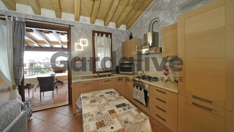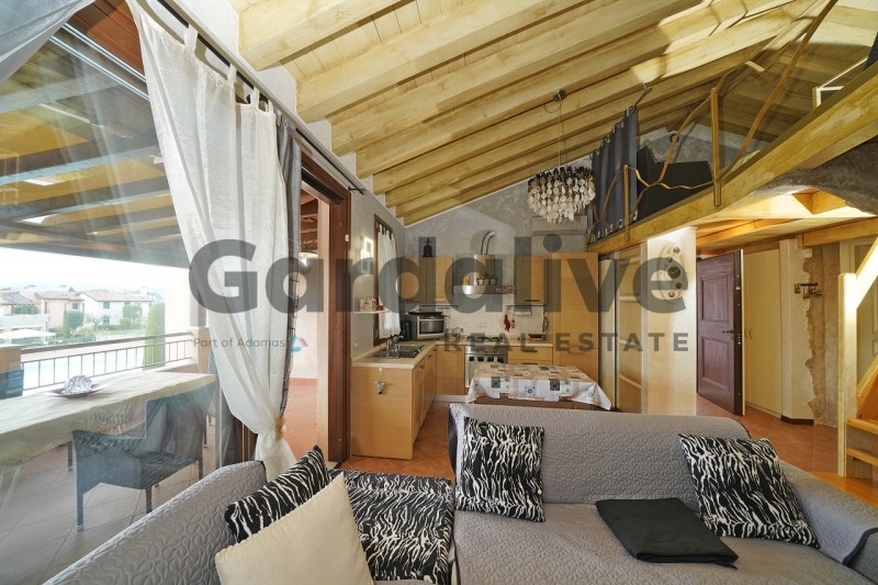 Appartamento all'ultimo piano con terrazza vivibile in residence con piscinaall'interno del rinomato residence 'la rocca', a pochi minuti dalle sponde del lago di garda, proponiamo un raffinato appartamento posto al piano primo ed ultimo, una soluzione che garantisce massima privacy, silenzio e una piacevole apertura sulla piscina. L'immobile si distingue per l'eccellente stato manutentivo, la cura dei dettagli e viene venduto arredato, pronto per essere vissuto fin da subito.la zona giorno è accogliente e ben organizzata, con soggiorno e angolo cottura perfettamente integrati e accesso diretto a una terrazza vivibile, ideale per pranzi all'aperto e momenti di relax. Il comfort abitativo è ulteriormente valorizzato dalla presenza del riscaldamento a pavimento, che assicura una distribuzione uniforme del calore e un'elevata qualità degli ambienti.la zona notte comprende una spaziosa camera matrimoniale e un pratico soppalco, utilizzabile come spazio accessorio multifunzionale, ideale come zona relax, area hobby o comodo spazio di appoggio completa il piano un bagno finestrato, ben rifinito, con comodo spazio dedicato alla lavanderia.al piano seminterrato troviamo un ampio garage di circa 26 mq, facilmente accessibile e in grado di ospitare due auto.il residence 'la rocca' rappresenta uno dei contesti più richiesti della zona, grazie agli ampi spazi verdi perfettamente curati e ai servizi esclusivi: piscina di grandi dimensioni con area idromassaggio, campi da tennis, uliveto e zone relax. La presenza di videosorveglianza h24 e del servizio di portineria garantisce sicurezza, ordine e una gestione impeccabile durante tutto l'anno.una soluzione di alto livello, ideale come casa vacanza o investimento, perfetta per chi desidera vivere il lago di garda in un contesto curato, riservato e ricco di servizi.